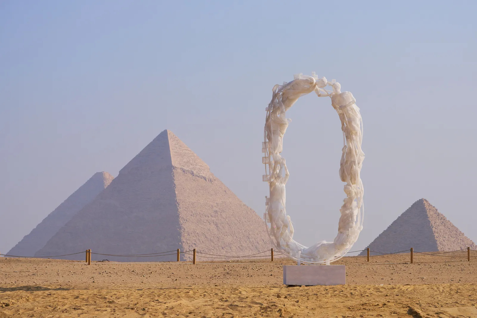 Hosted at the 4,500-year-old UNESCO World Heritage site, the annual show invites modern artists to place their installations in direct conversation with ancient Egypt. The 2025 theme focuses on the cultural and symbolic meaning of the pyramids, especially the human search for eternity. Through the work of ten international artists, visitors are encouraged to view the site through fresh perspectives and explore how ancient ideas can inspire today’s creative world. Below are some of the key installations featured this year:
