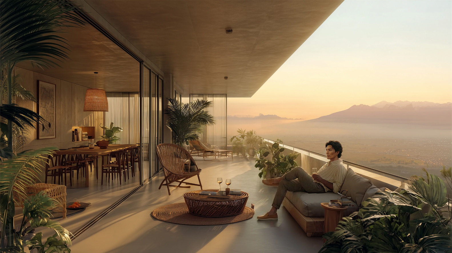 Both towers feature wedge-like, pyramidal profiles that step back as they rise, with external terraces at each level reinforcing the connection to the mountainous silhouette. The primary tower’s approximately 56-floor stack accommodates Class-A office space in the lower and middle sections alongside premium residential apartments in the upper floors. The secondary 80-metre tower focuses on hospitality, integrating a luxury hotel and branded residences that strengthen the development’s mixed-use offer.