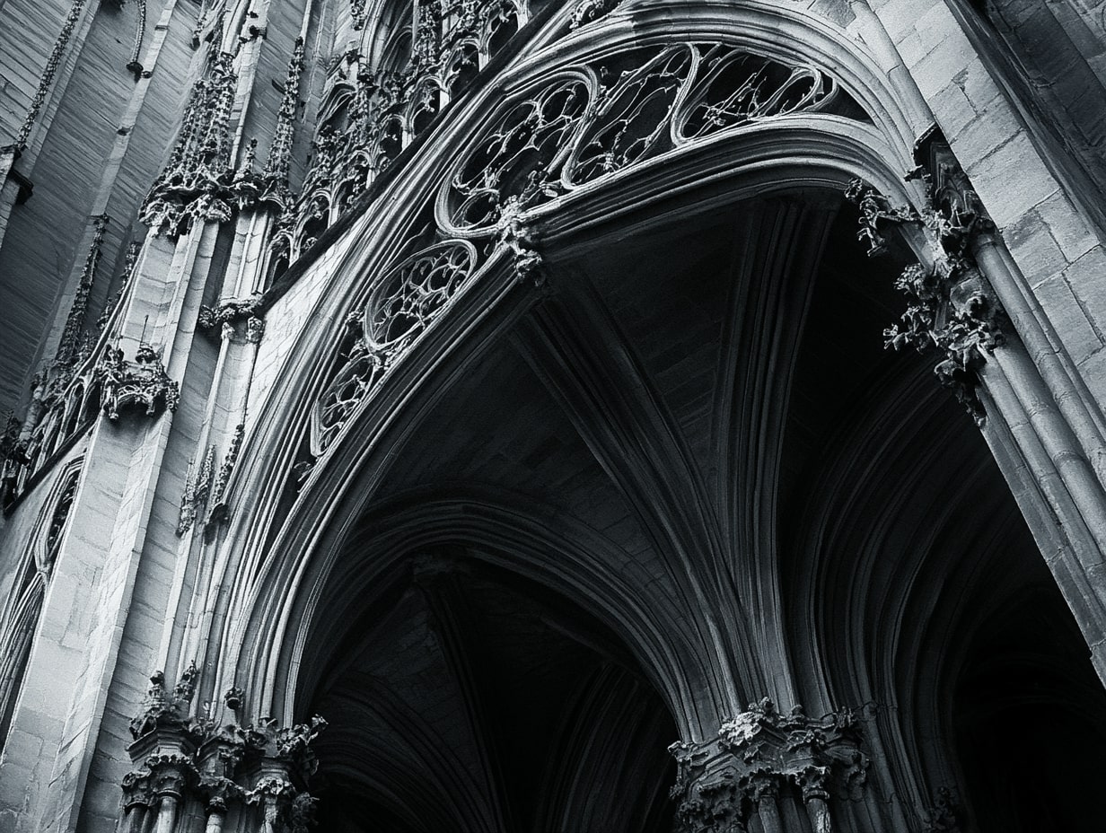 Gothic arches, also called pointed arches, gained prominence during the High and Late Middle Ages. Their defining feature is the pointed apex, which differs from the semicircular form of classical arches. By distributing weight vertically, they enabled the construction of taller structures and expansive interiors. Gothic arches often appear in cathedrals, churches, and civic buildings, where ribbed vaulting frequently accompanies them. Examples of these arches include those in Chartres Cathedral and Notre-Dame de Paris.