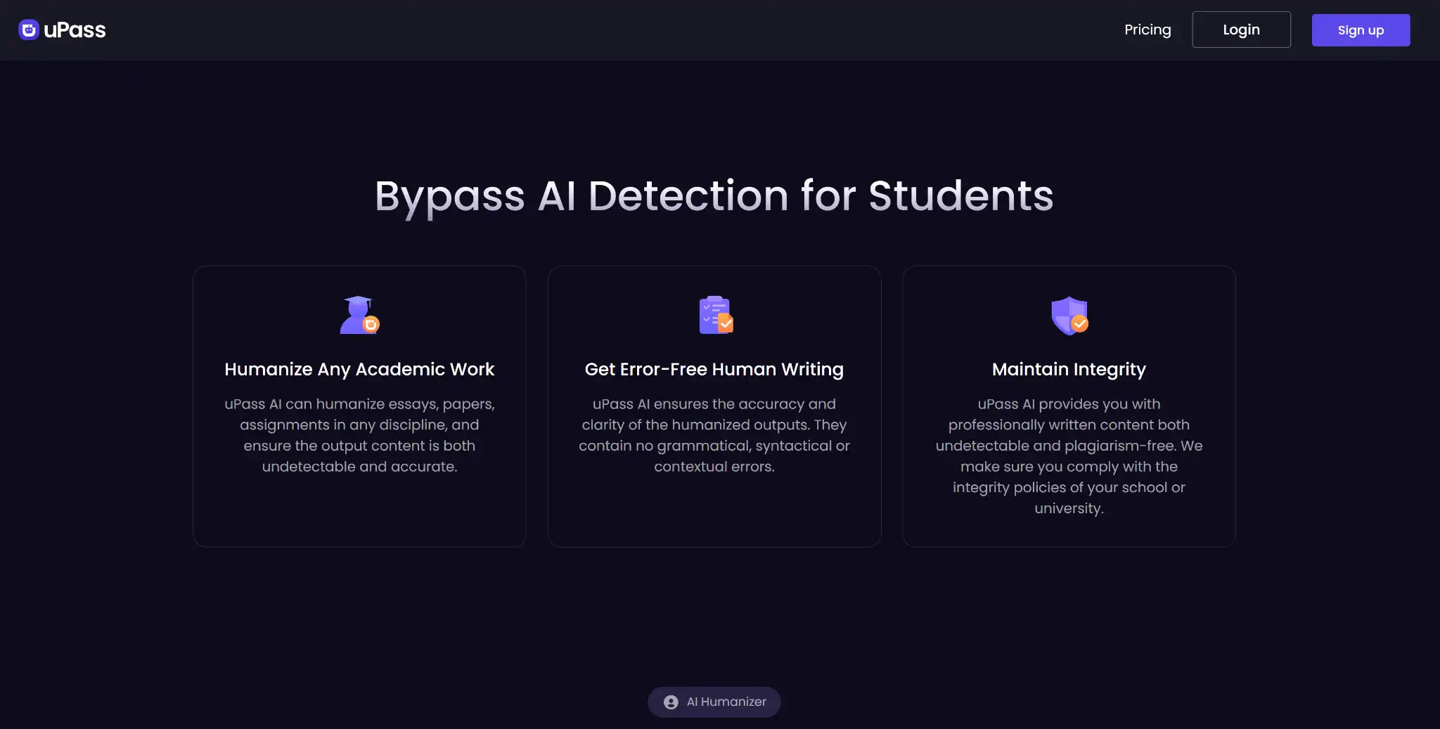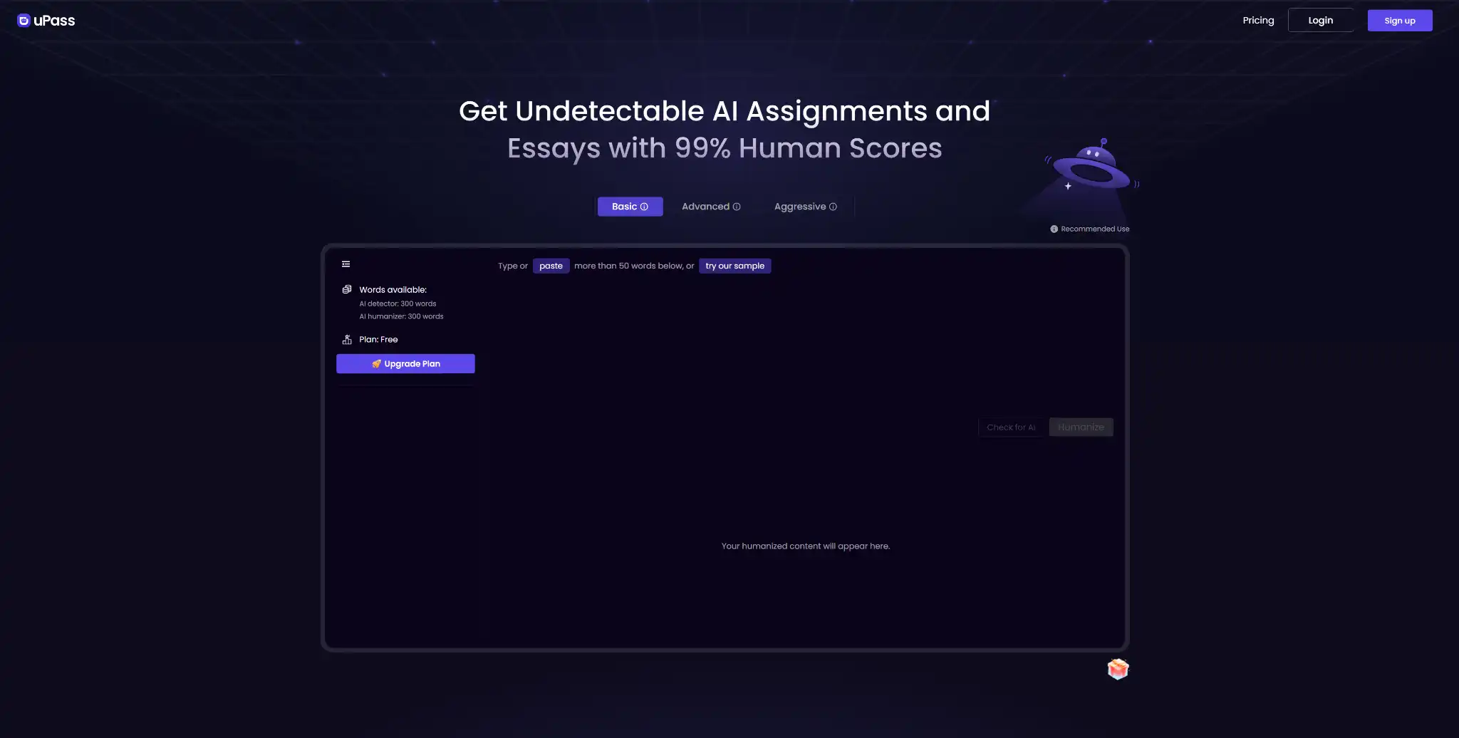 uPass AI combines multi-engine detection with three rewriting modes—Basic, Advanced, Aggressive—supported by low-friction UX.