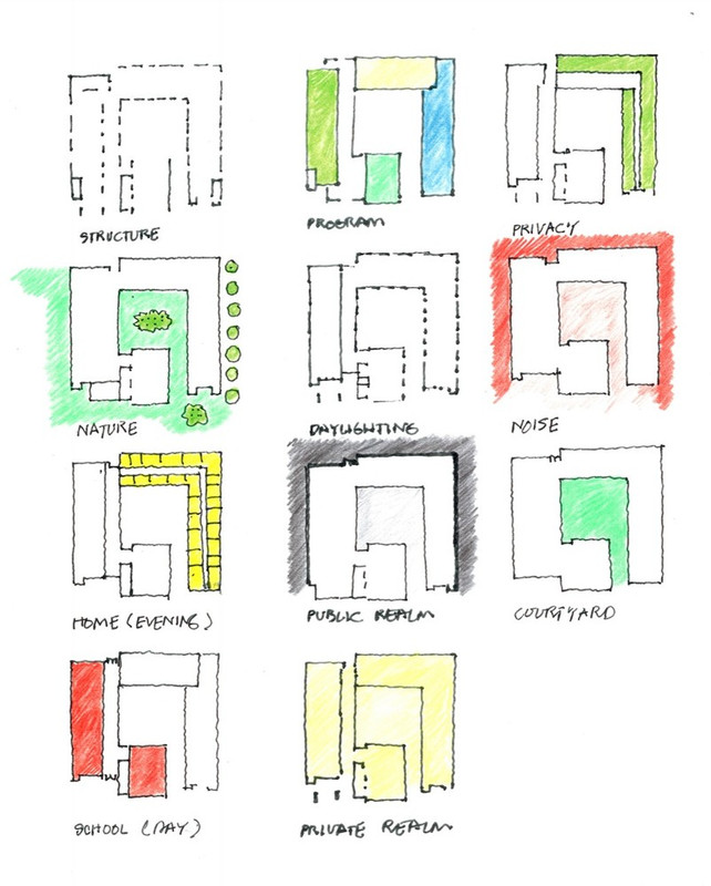 After researching about neighborhood, you need to make some decisions. Where are your masses, pedestrian ways, green areas etc… going to locate or how do you decide the shape of your building, locations of open or semi open areas ?