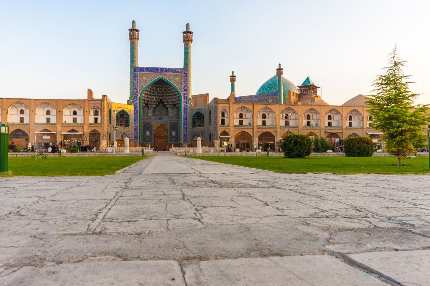 The imam mosque of isfahan cannot be understood in isolation from the urban system it anchors. Naqsh-e Jahan Square, a UNESCO World Heritage Site, measures approximately 512 by 159 meters and is one of the largest urban squares built anywhere in the pre-modern world. Along its four sides stand four major monuments: the Imam Mosque to the south, the Sheikh Lotfollah Mosque (a private royal mosque, without minarets) to the east, the Ali Qapu Palace to the west, and the northern gateway leading to Isfahan’s grand bazaar.