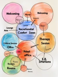 The use of bubble diagrams in architecture traces back to the mid-20th century, coinciding with the rise of modern architectural practices. Pioneering architects like Frank Lloyd Wright and Le Corbusier utilized similar graphic representations to illustrate their visions. Over time, bubble diagrams evolved, adopting various styles and techniques to articulate spatial organization. Today, they remain integral to the design process, bridging traditional methods with modern digital tools, such as software that allows for dynamic adjustments and revisions.