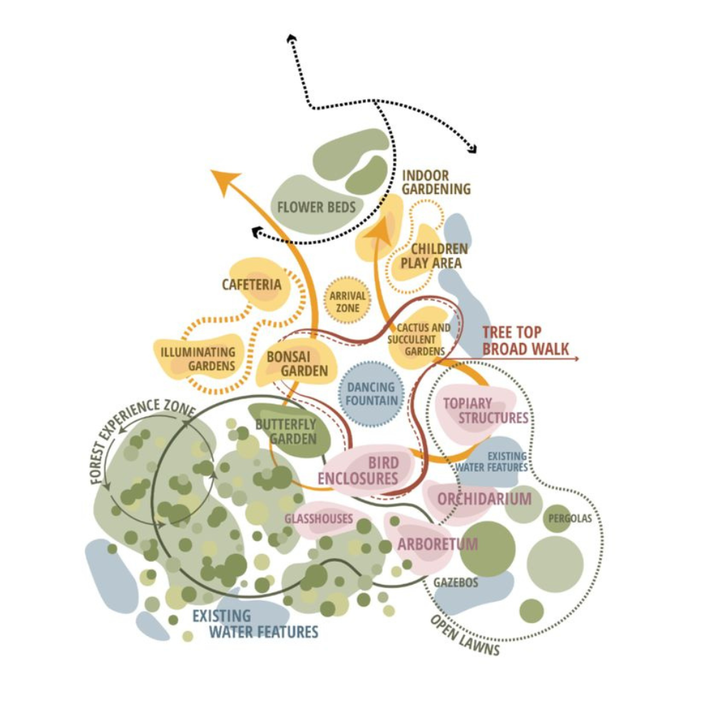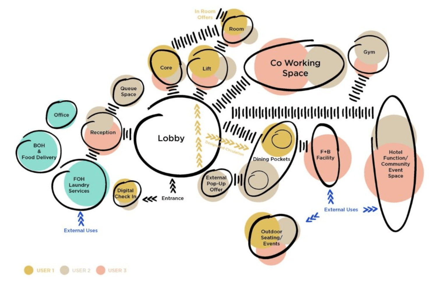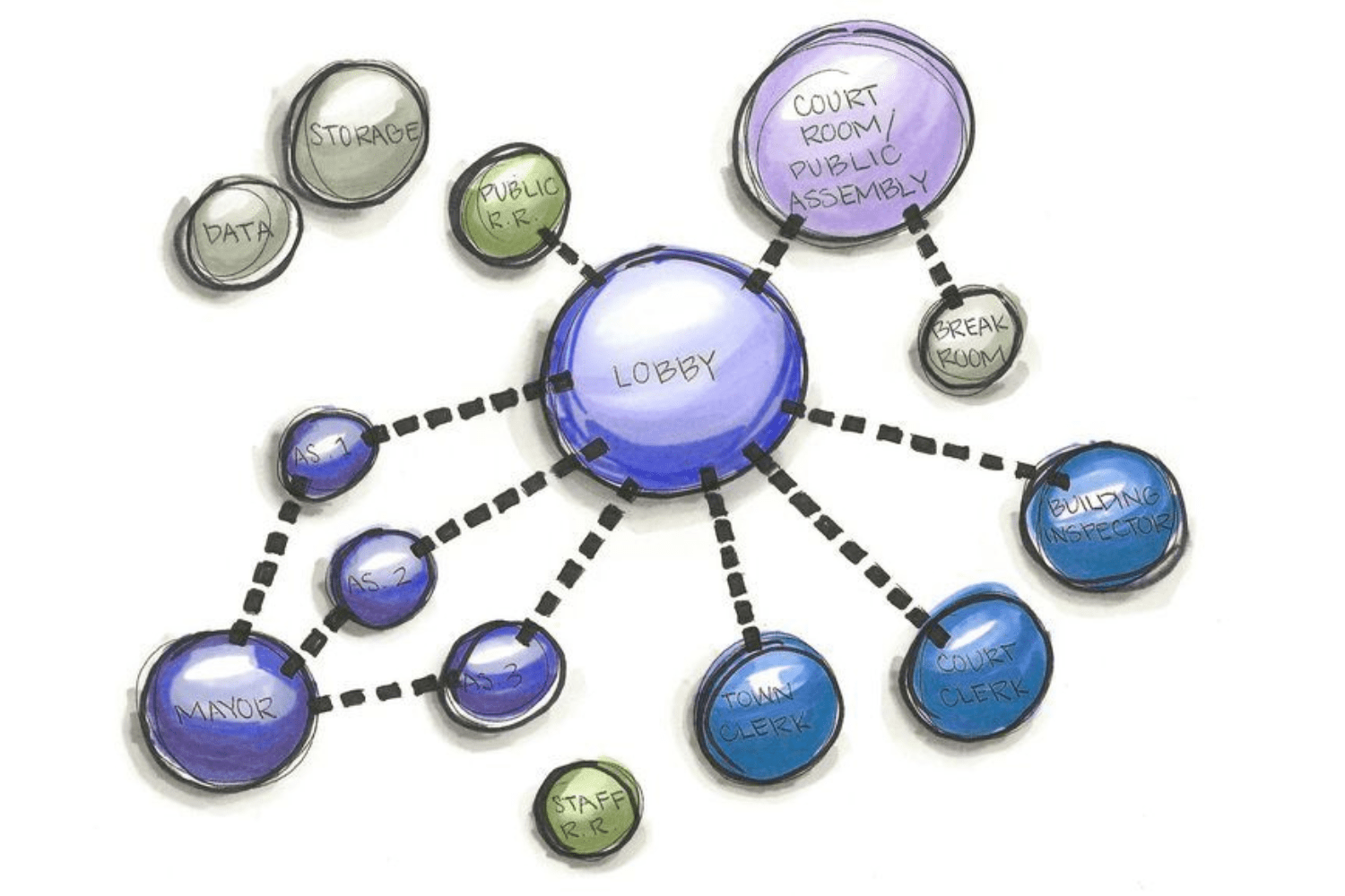 Simplicity is a defining characteristic of an effective bubble diagram. The graphic must remain easy to read, uncluttered, and visually coherent so its purpose can be understood at a glance. Clean lines, consistent bubble shapes, and minimal but meaningful annotation help communicate the design intent effectively. A visually simple diagram enhances collaboration, allowing clients, consultants, and team members to quickly grasp the overall spatial strategy without being overwhelmed by detail.