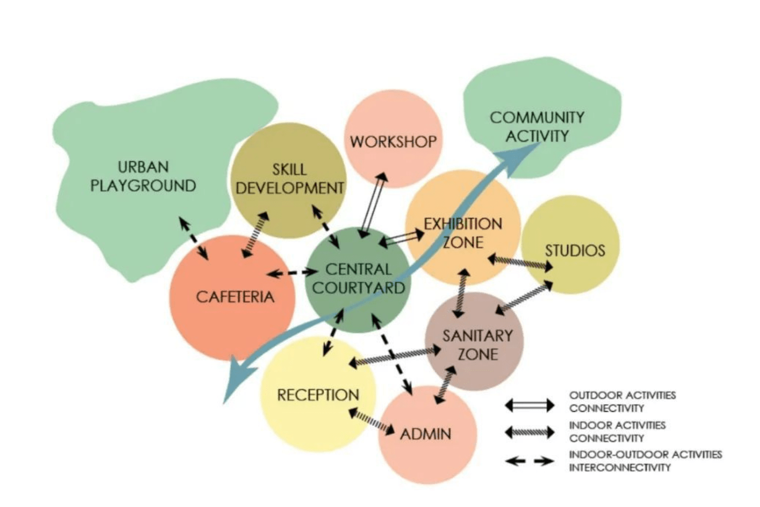 Finally, a strong bubble diagram responds directly to the project’s programmatic needs. Each bubble should represent a distinct functional component, ensuring nothing essential is overlooked and everything included has purpose. By aligning spatial relationships with real operational needs, the diagram transforms the written program into a visual planning tool. This link between program and diagram ensures that the architecture grows from a foundation of clarity and functional logic.