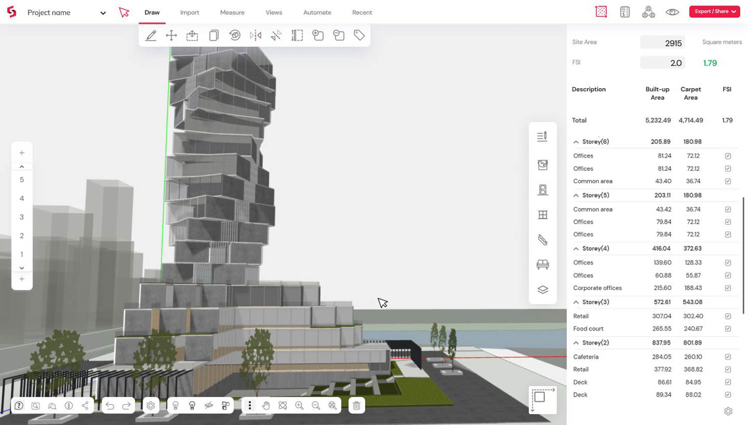 What sets Snaptrude apart from other architectural design software is its focus on maintaining the creative flow of early-stage design while providing the data-rich outputs typically associated with detailed BIM workflows. Architects can push, pull, twist, and rotate designs with the ease of sketching, yet every action produces construction-ready information.