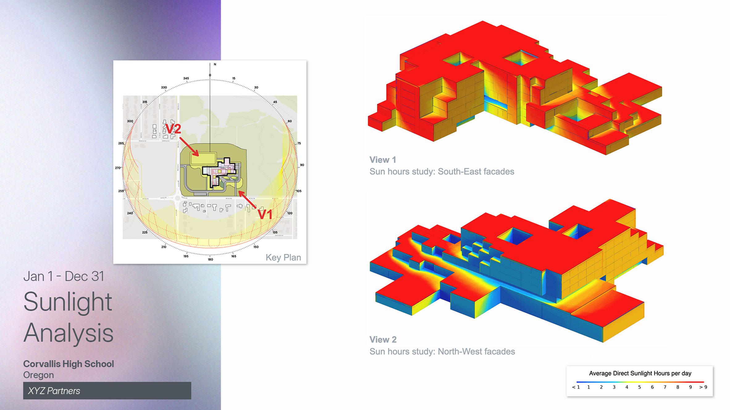 As the design develops, the architect can toggle between 2D and 3D views, add fenestration from the built-in library, and apply materials that automatically update the Bill of Quantities. Sun hours analysis and illumination studies inform design decisions about orientation and façade treatment. Throughout this process, the project remains a single source of truth, with changes propagating automatically across all views and documentation.