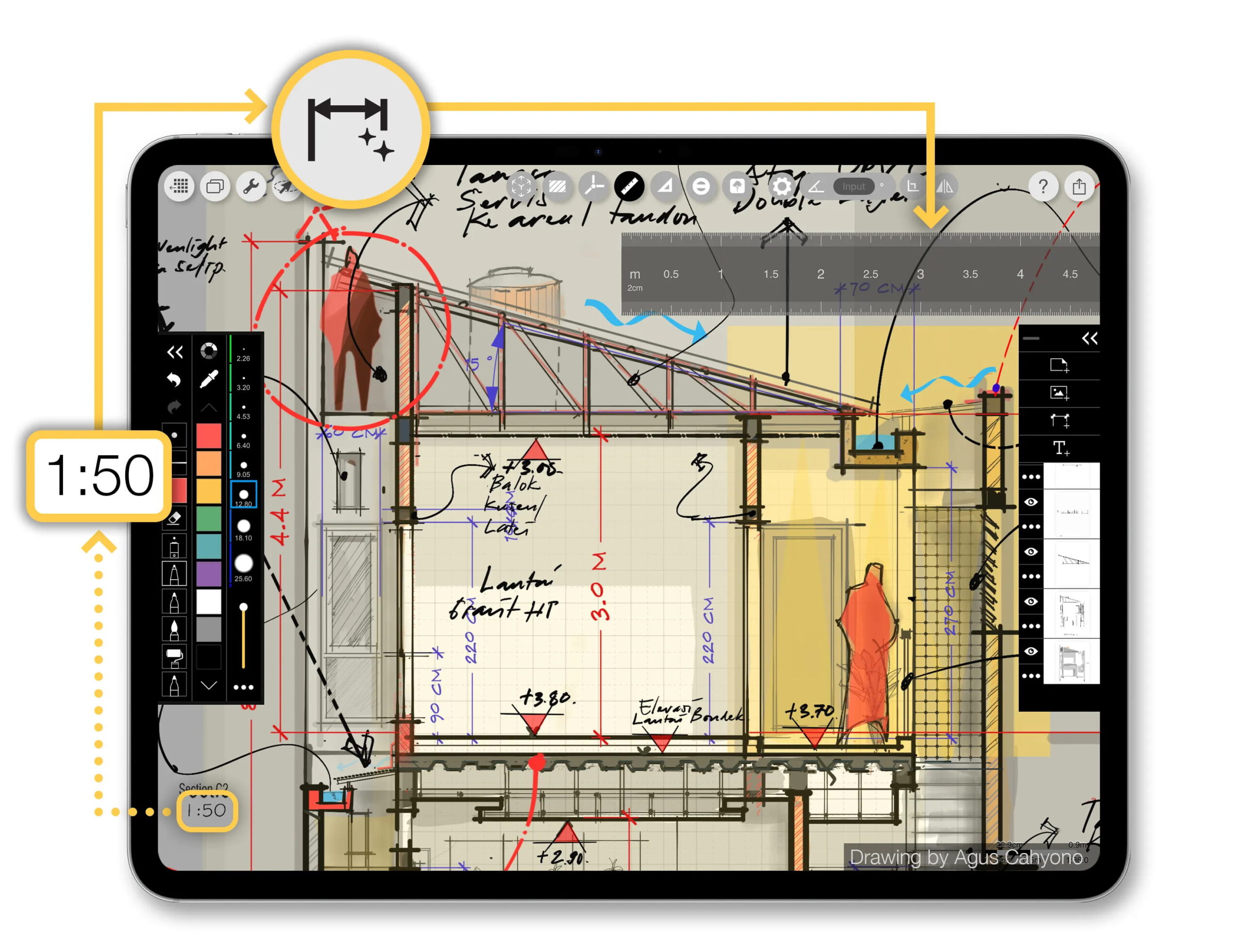 Architects reviewing shop drawings, sketching revisions over construction details, or producing on-site redlines import new PDFs constantly. Each one historically needed a manual scale calibration. With AI Scale, that calibration is removed from the critical path, and the smart dimension and area tools are available the moment the drawing opens.