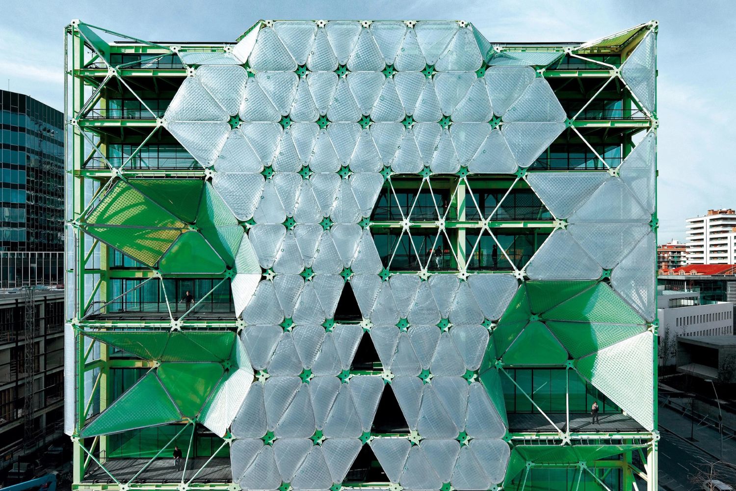 Completed in 2010 by Enric Ruiz-Geli’s Cloud 9, the Media-TIC building utilizes ETFE cushions that expand and contract depending on solar exposure. The façade’s inflatable panels are strategically placed on the southeast and southwest sides, where they respond to sunlight by adjusting air pressure inside the cushions. This kinetic reaction helps regulate thermal gain, reduce cooling loads, and maintain indoor comfort in Barcelona’s Mediterranean climate. Acting as a lightweight, adaptive membrane, the façade demonstrates how pneumatic systems can serve as sustainable and visually distinctive architectural elements.