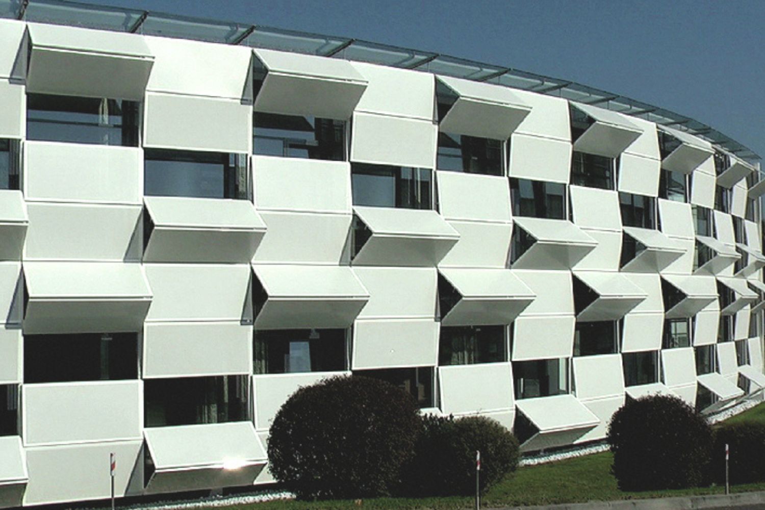 Completed in 2007 by Ernst Giselbrecht + Partner, the Kiefer Technic Showroom is renowned for its motorized façade composed of perforated aluminum panels. Each panel moves independently in vertical and horizontal directions to regulate light, privacy, and temperature inside the building. The façade shifts continuously throughout the day, creating a rhythmic, sculptural appearance that transforms the building into a dynamic object. Driven by automation and controlled via preset programs, the movement of these shading elements makes the showroom a benchmark for kinetic architectural envelopes in Central Europe.