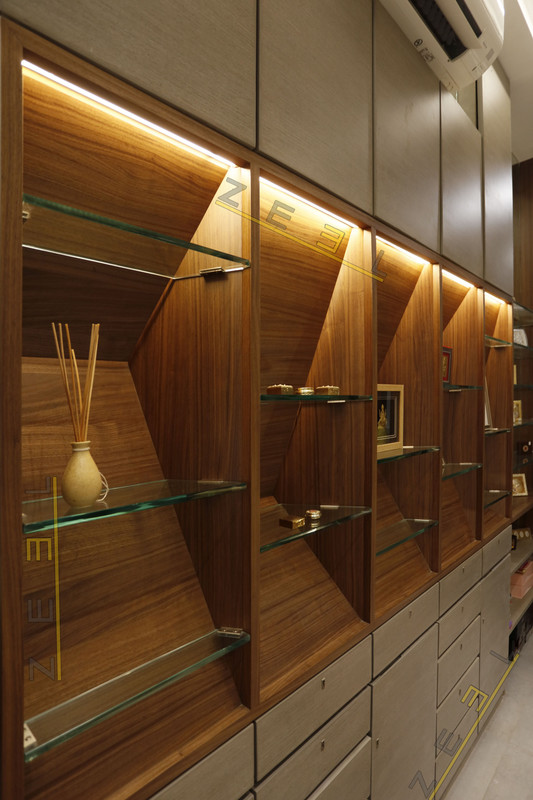 He didn’t want much of display as he deals in wholesale market, thus storage requirement was more than the display area. We selected a colour palette of grey and brown representing earth and wood. Wood is used in display unit, grey tiles are used on the floor while grey veneers are used in the rest of the areas.