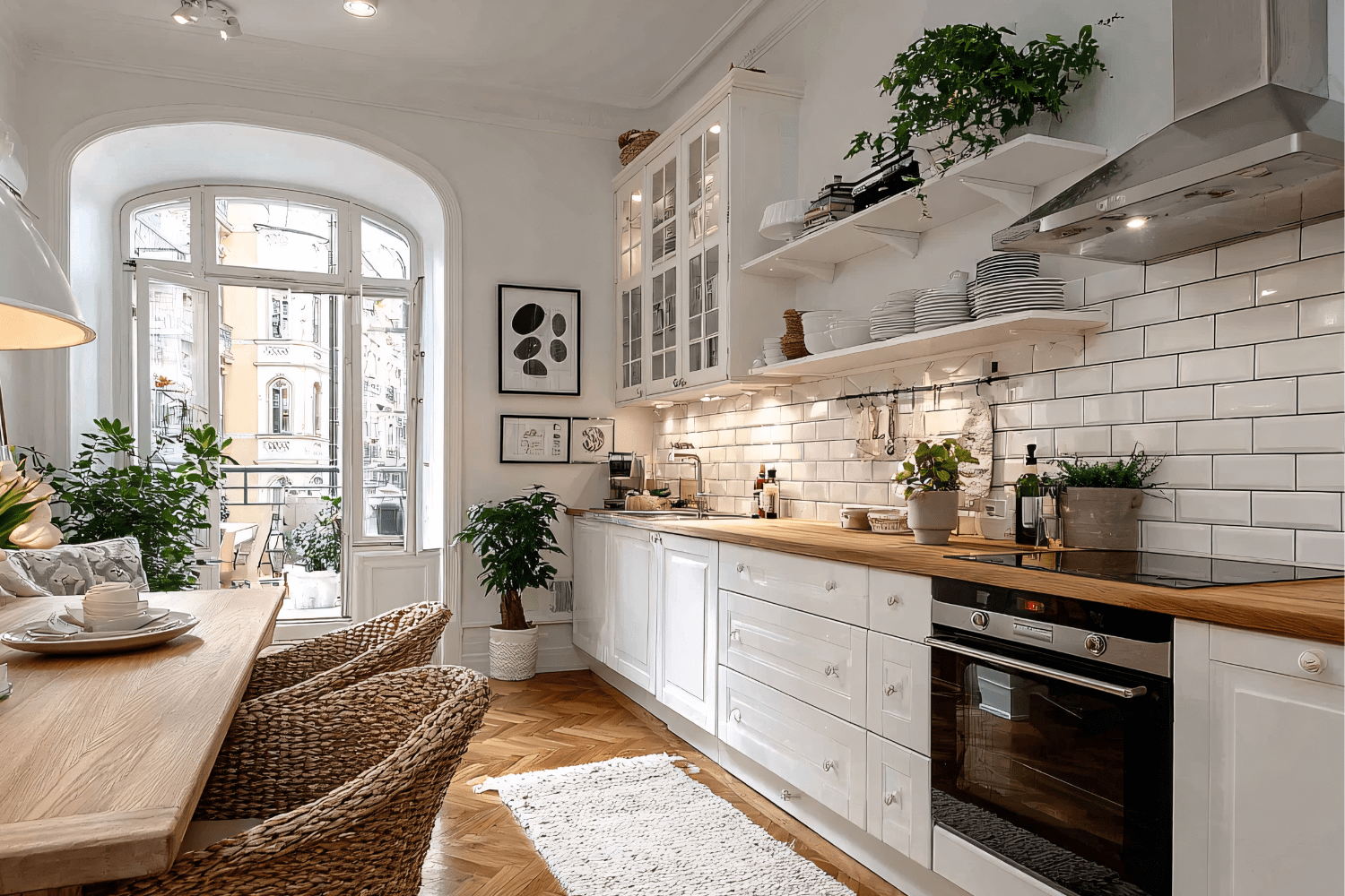 Open shelving continues to be a popular design feature because it creates visual openness and offers opportunities for decorative displays. Instead of bulky upper cabinets, open shelves allow you to showcase favorite dishes, cookbooks, or artisanal jars. This approach works particularly well in smaller kitchens, as it helps the room appear larger and more inviting. Using uniform dishware or natural materials keeps the look cohesive and stylish.