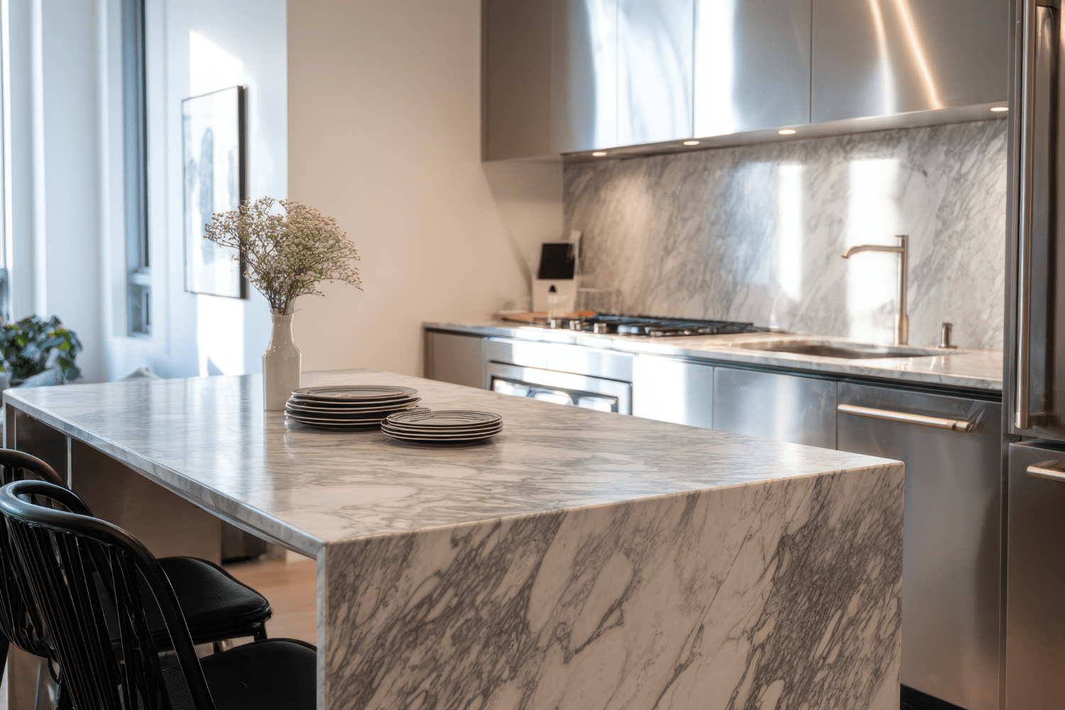 Marble countertops have long been admired for their elegance and timeless beauty. Whether you choose classic white Carrara marble or a dramatic veined variety, marble instantly adds a high-end feel to any kitchen. Its smooth texture and natural patterns make it a standout surface for cooking and entertaining. While it requires some maintenance, marble remains a favorite choice for homeowners seeking refined luxury.