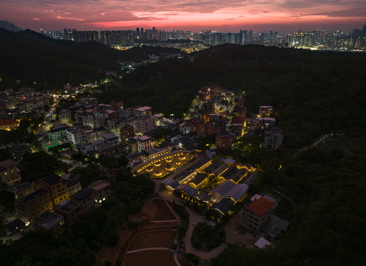 Integrating cultural projects into rural settings is a new attempt in this regard. In Changshou Village, located in the Pingshan District of Shenzhen, the esteemed Chinese performing art studio, Longma Studio, has embarked on an experimental endeavor to establish a theater commune. This commune is intended to serve as a hub for regular rural art performances, encompassing the entire process from creation and rehearsal to staging dramas. To support this endeavor and accommodate the increasing number of audiences and tourists, architect Zhu Xiaodi was commissioned to steer the village’s overall planning and the design of key areas.