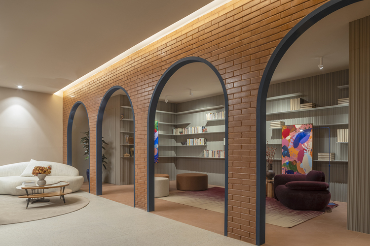 A sequence of arches that simultaneously separates and unites: the past and introspection, represented by the library; and the present, represented by the socialization space. The arches compel visitors to transition between these two moments—past and present—aiming to create a desired future.