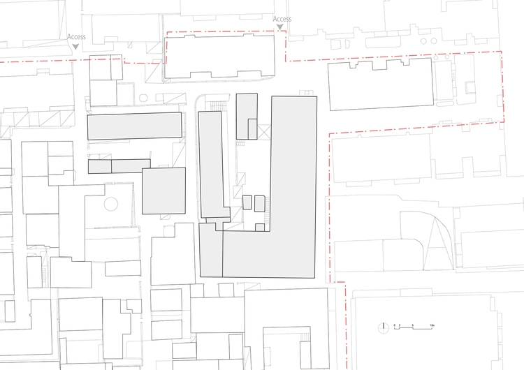 The site comprises diverse architectural remnants, from private residences, apartments to industrial structures, reflecting a range of styles and requiring a renovation philosophy that retains the site’s memories. The renovation fosters the connections with the immediate surroundings within the site and the external context both in time and space. The western wall of the factory building has been preserved, and the courtyard is redefined with a modern steel and glass facade. The roof’s original framework is retained, with purlins transforming into seating steps, allowing natural light to penetrate and maintain the building’s original character.
