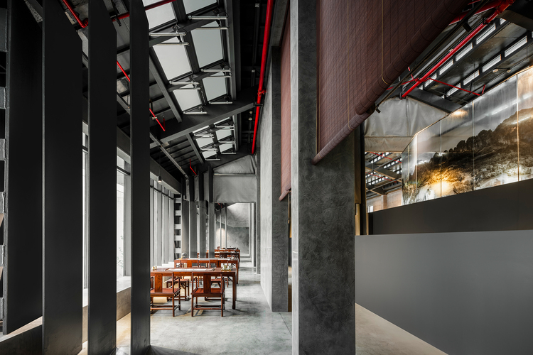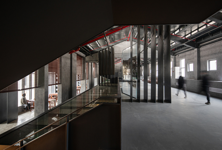 Thus, with minimal intervention, the architect created an aerial platform that overlooks and connects with the Chaichanglong and Tashan historical areas. This platform acts as a new urban public space, a plaza, or an urban terrace, and is the northern entry point for an aerial corridor system. Steps inside lead to this walkway, and the interior functions as a flexible exhibition space for cultural activities, with steel walls like bookshelves blending industrial and cultural aesthetics.