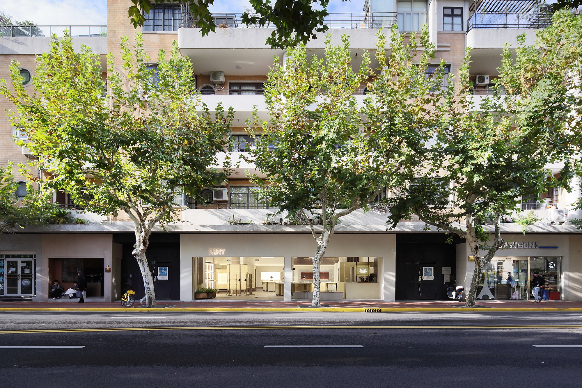 We envisioned a space that merges coffee culture and beauty retail within this historic neighborhood, creating a multi-dimensional experience that transcends time. Located on the ground floor of the annex, this boutique, designed by Dayuan Design, embraces the concept of “pure flexibility.” By preserving the building’s serene character and incorporating a movable display system, the space seamlessly intertwines beauty showcases, coffee tasting, and the dappled shadows of sycamore trees, offering a lifestyle proposal that bridges the past and present.