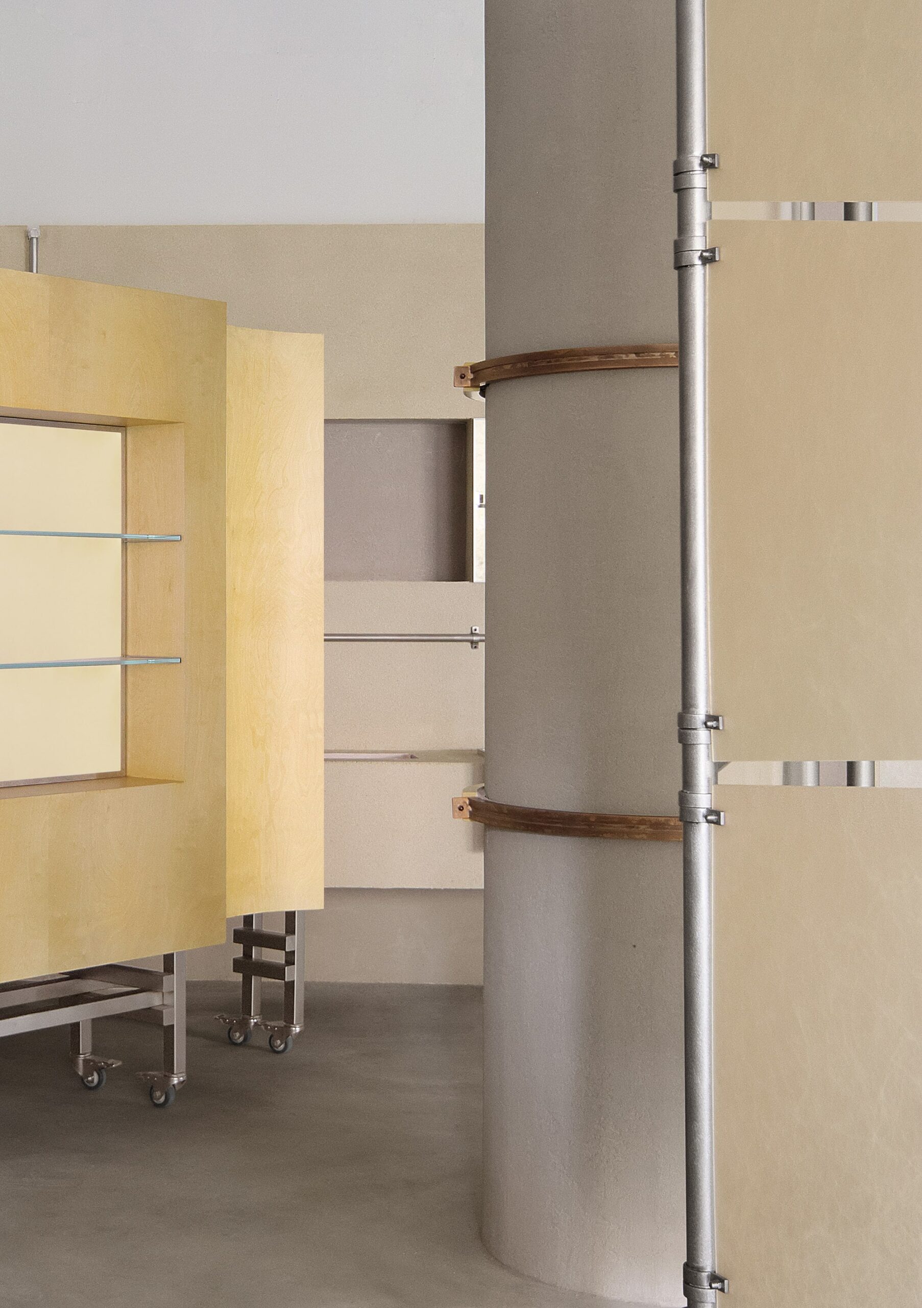 As the display system is reconfigured, the position and purpose of each platform shift accordingly. This versatility enhances both the adaptability of the props and their interactive potential, creating a dynamic spatial dialogue between users and the environment.