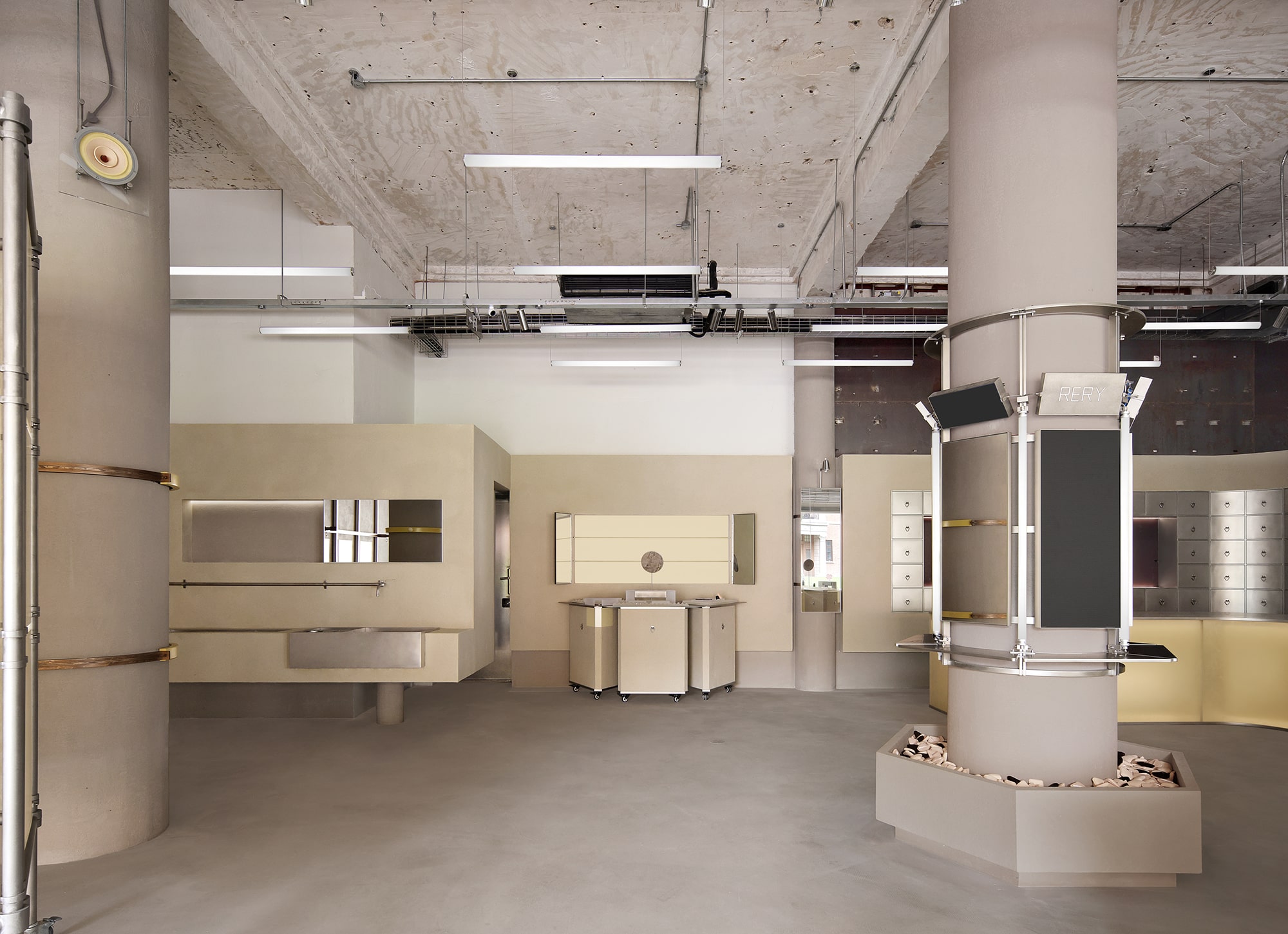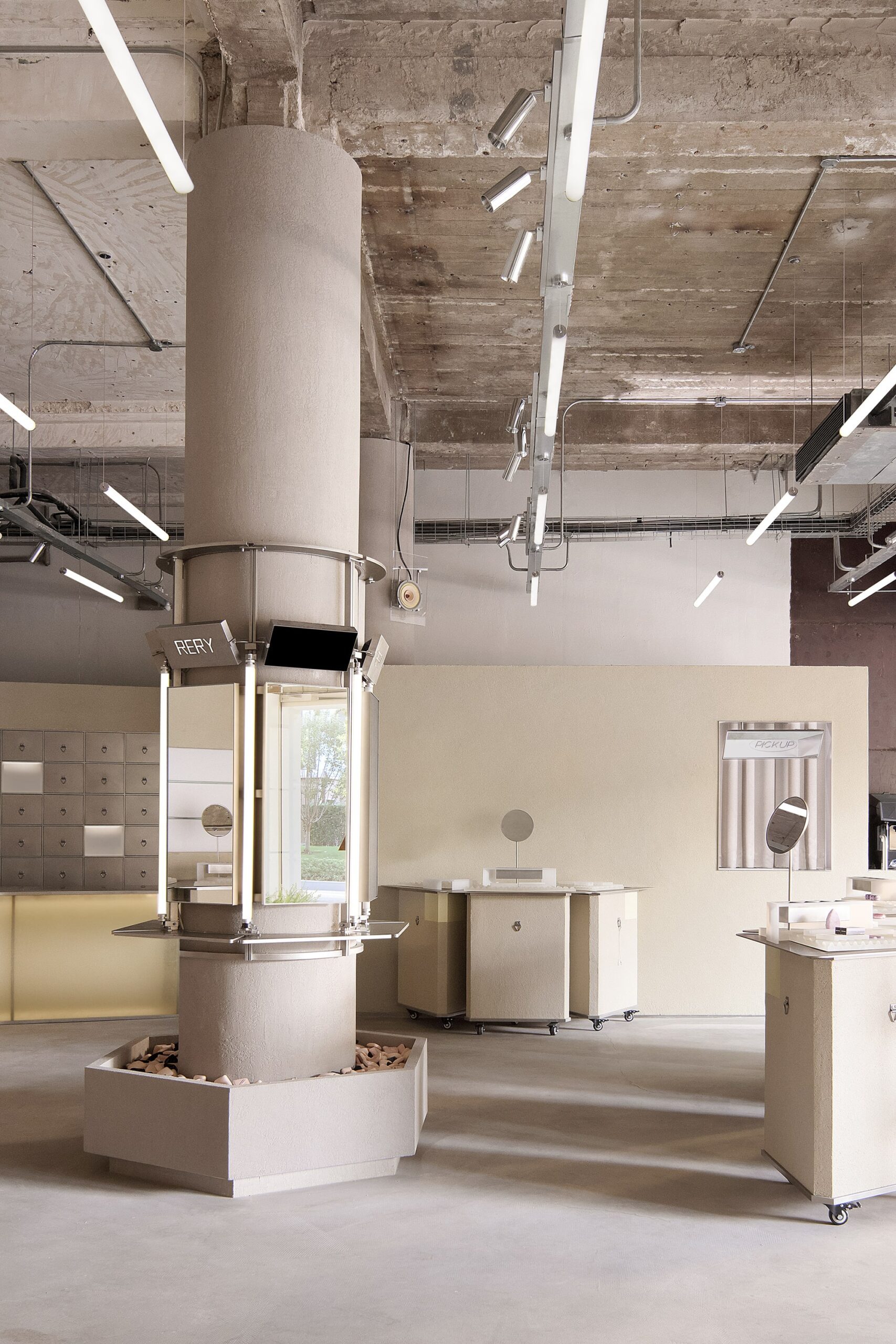 The concept of a “curatorial composite space” became the central theme. The space needed to accommodate daily displays for multiple brands while maintaining flexibility to host various pop-up events, aligning with the positioning of a multi-brand beauty collective.