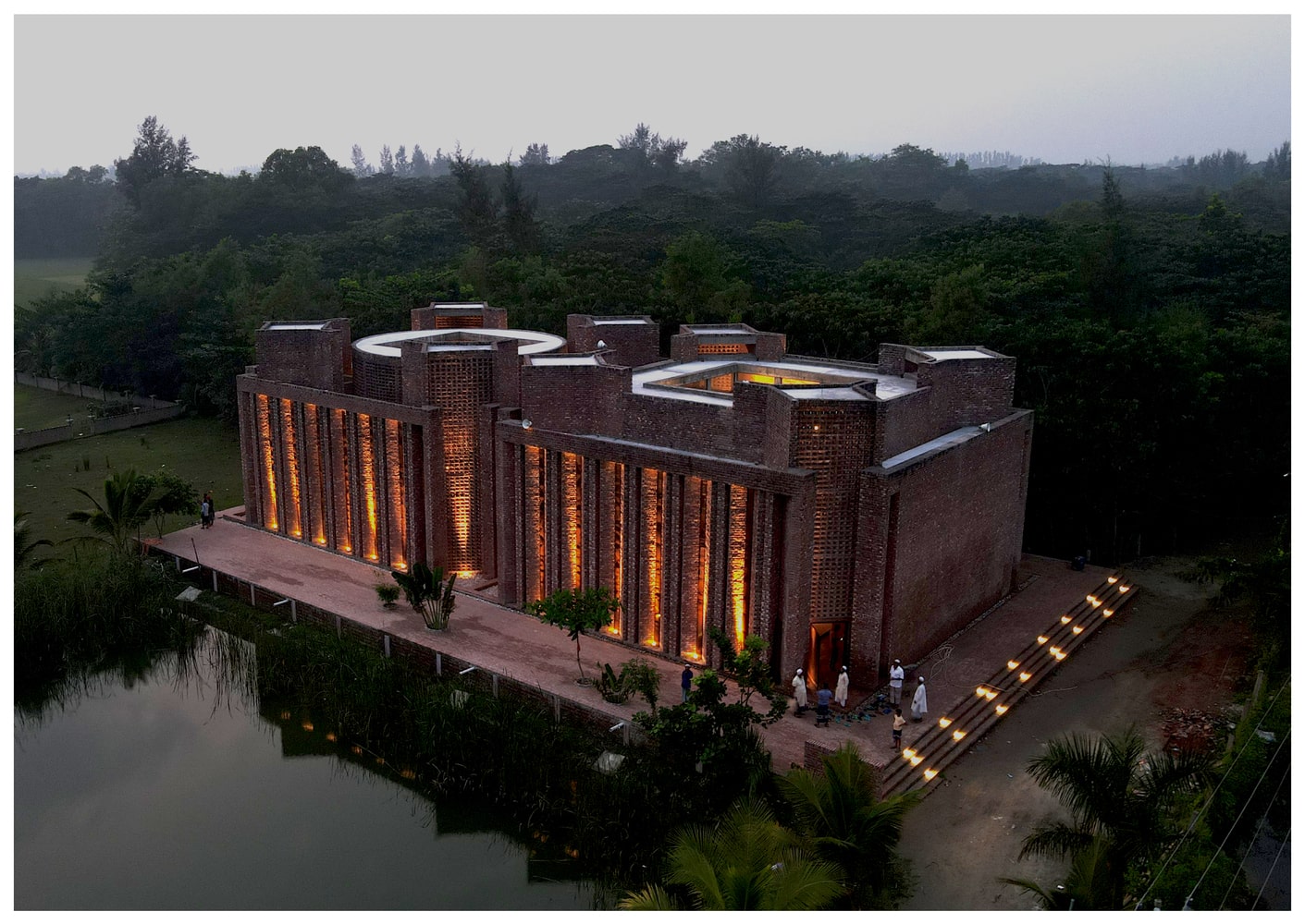 Inspired by the traditional Bengali homestead, where raised plinths made from pond-excavated earth protect homes from seasonal flooding, the mosque is similarly elevated. This raised foundation anchors the architecture both physically and metaphorically—elevating the structure, the spirit, and its enduring resilience.