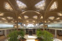 The terminal’s roof is a defining element, with an undulating form that crescendos at the center, evoking the silhouettes of Cambodia’s palaces and temples. Structural “trees” spanning 36 meters support the lightweight steel grid shell, giving the building both strength and a sculptural quality. Beneath this roof, latticed soffits inspired by traditional basket weaving filter natural daylight into the terminal, creating a dynamic interplay of light and shadow throughout the day. A network of 180 strategically placed skylights brings sunlight deep into the interior, while integrated artificial lighting provides warmth and clarity during evening hours. The floor slab soffits feature woven infills that complement the overhead lattice, reinforcing a sense of cohesion between structure and interior finish. The terminal’s design successfully balances monumental scale with human-centered spaces, maintaining comfort, orientation, and visual clarity for all users.