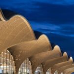 Techo International Airport is a celebration of Cambodian culture as much as it is an infrastructural hub. The architecture draws inspiration from traditional forms, particularly the rhythmic geometry of Khmer temples and the sweeping profiles of historic royal palaces. This cultural narrative is expressed through the undulating roof, latticed soffits, and sculptural structural elements, providing passengers with a sense of connection to Cambodia’s history from the moment they arrive. The interior houses over 200 handcrafted sculptures and a prominent bronze-cast Buddha, reinforcing the spiritual and artistic heritage of the country. Light, materials, and landscaping work together to create a multi-sensory experience where passengers engage with both the natural environment and cultural symbols, transforming the terminal into a living story of place and identity.