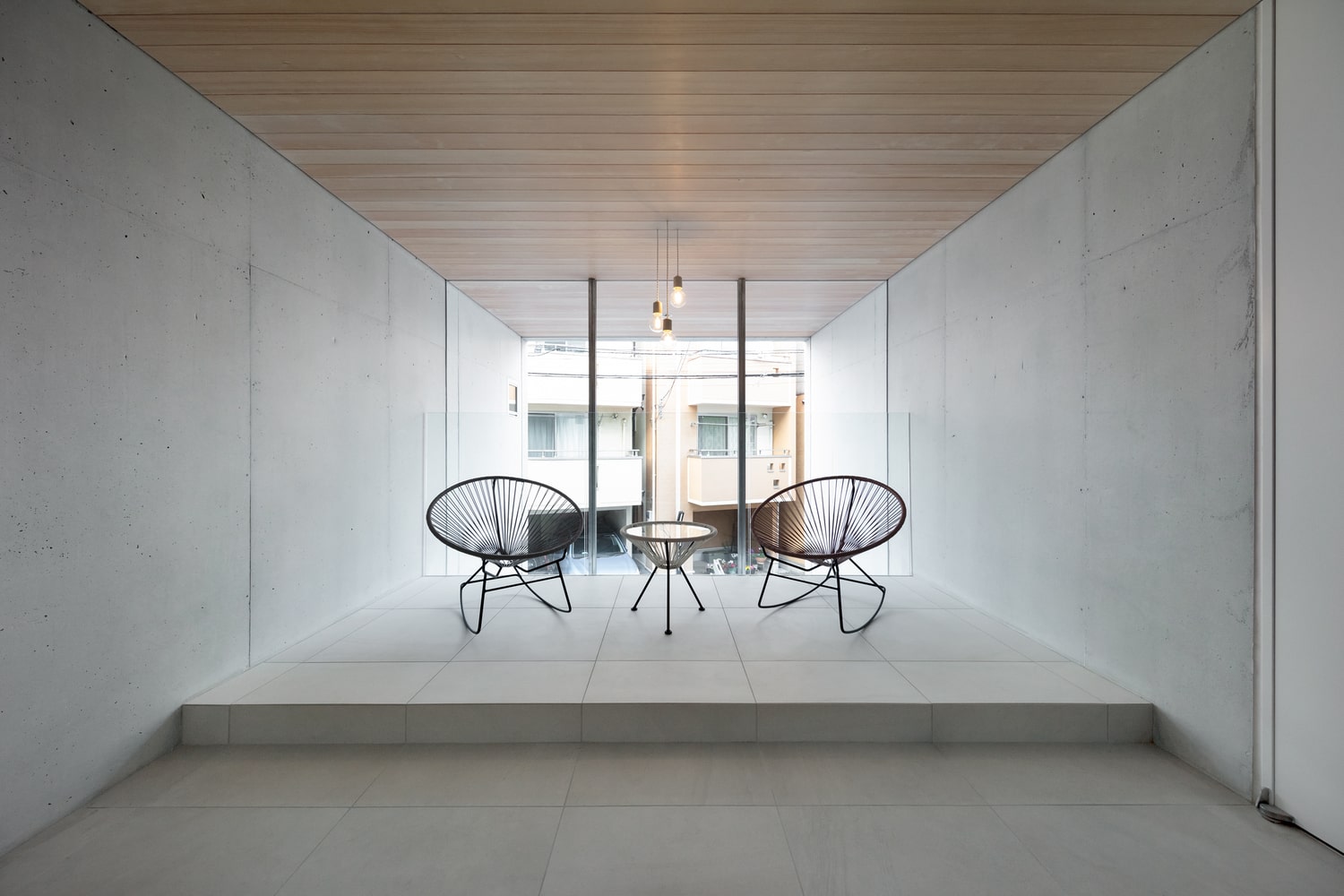 Material choice and finish play a crucial role in reinforcing the building’s concept and its riverine context. Common areas are finished with six different shades of white, creating a softly graduated palette that evokes the gentle mist and reflective qualities of the historical Kanda River. Natural light, carefully diffused through strategically placed openings, produces a serene and contemplative atmosphere throughout the day. The interiors combine wood, glass, and concrete, harmoniously integrating warmth, transparency, and solidity. These materials not only reinforce the building’s aesthetic identity but also support durability and user comfort, creating a human-centered environment that balances communal interaction with individual privacy.