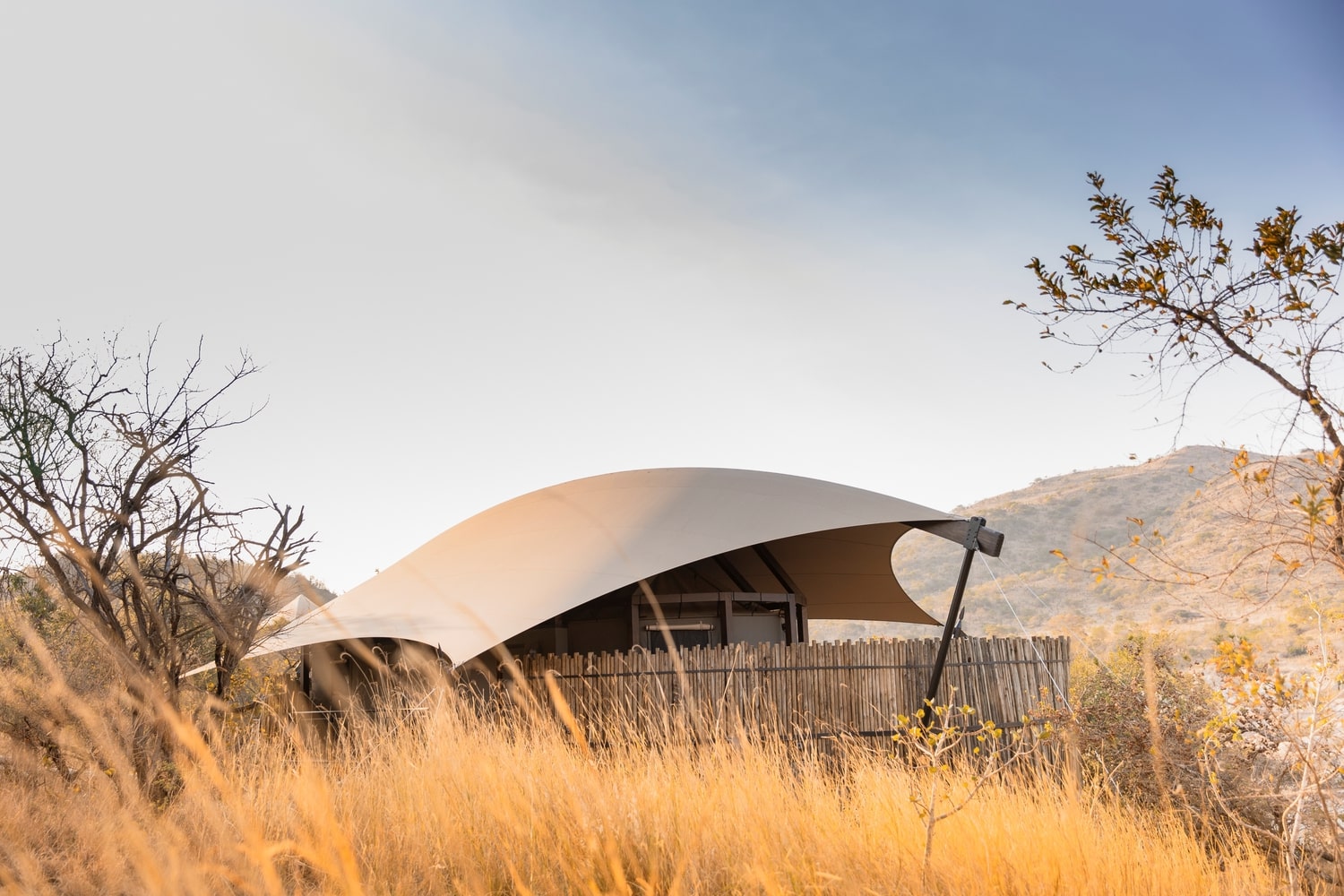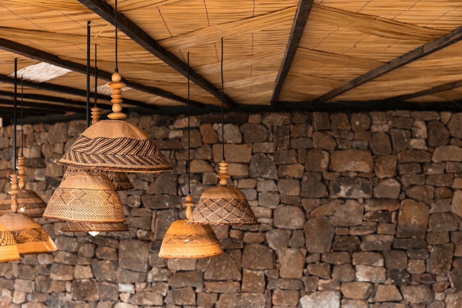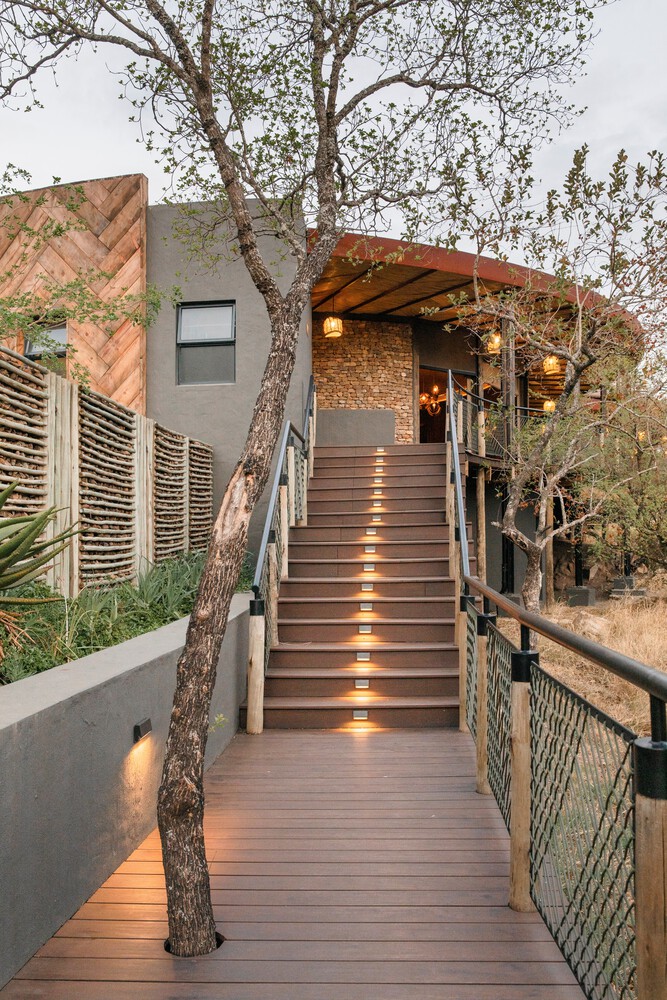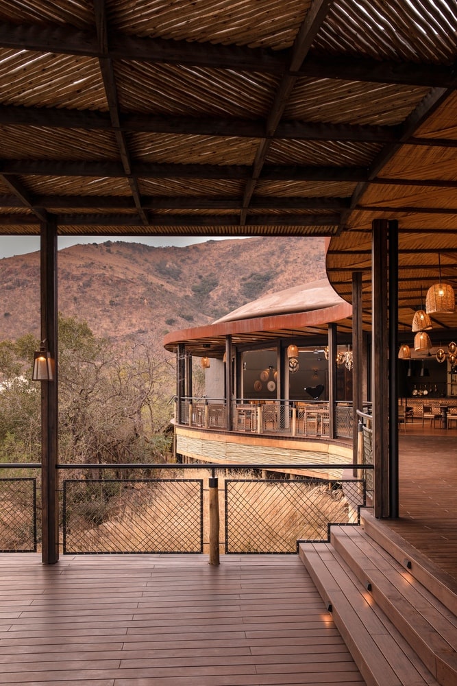 The architectural language of the central buildings mirrors the tented units, using curved concrete canvas roofs pigmented to harmonize with the landscape. Balustrades feature patterns inspired by traditional Zulu basket weaving, reinforcing the project’s thematic continuity and honoring artisanal skills.