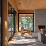 Long Lake Cottage operates entirely off-grid, powered by a substantial solar array. Sustainability is embedded not only in energy systems but also in construction choices. The building is crafted from locally milled, sustainably harvested wood, reducing transportation impact and strengthening ties to the region.