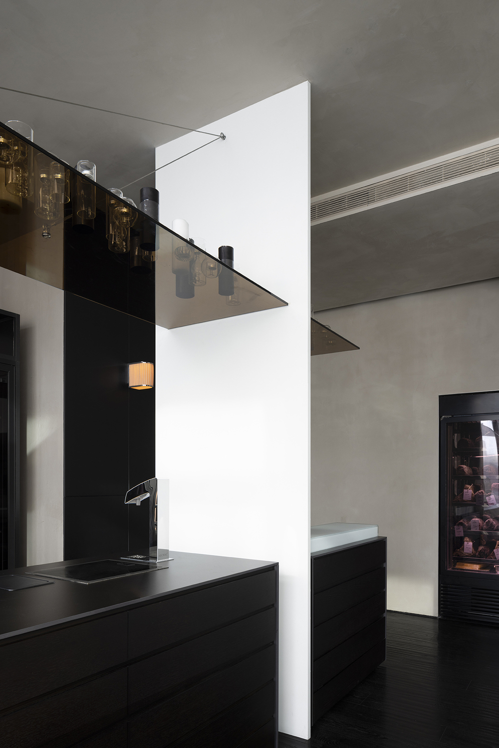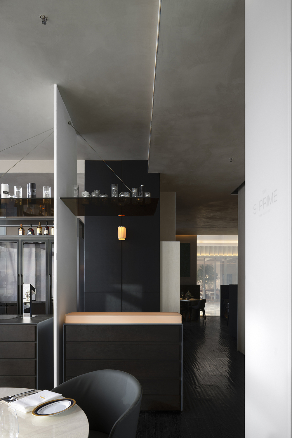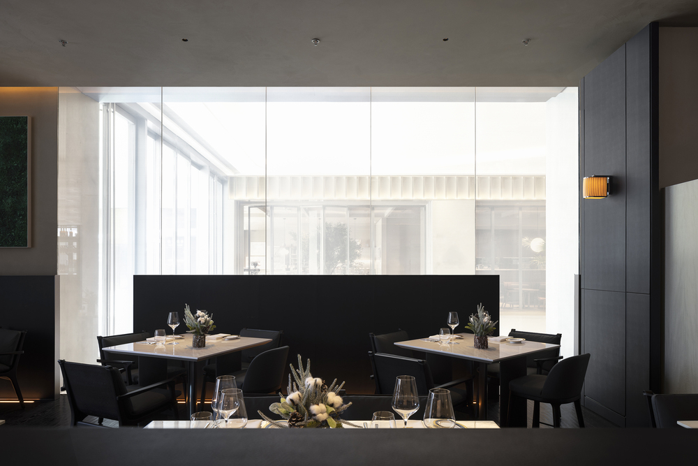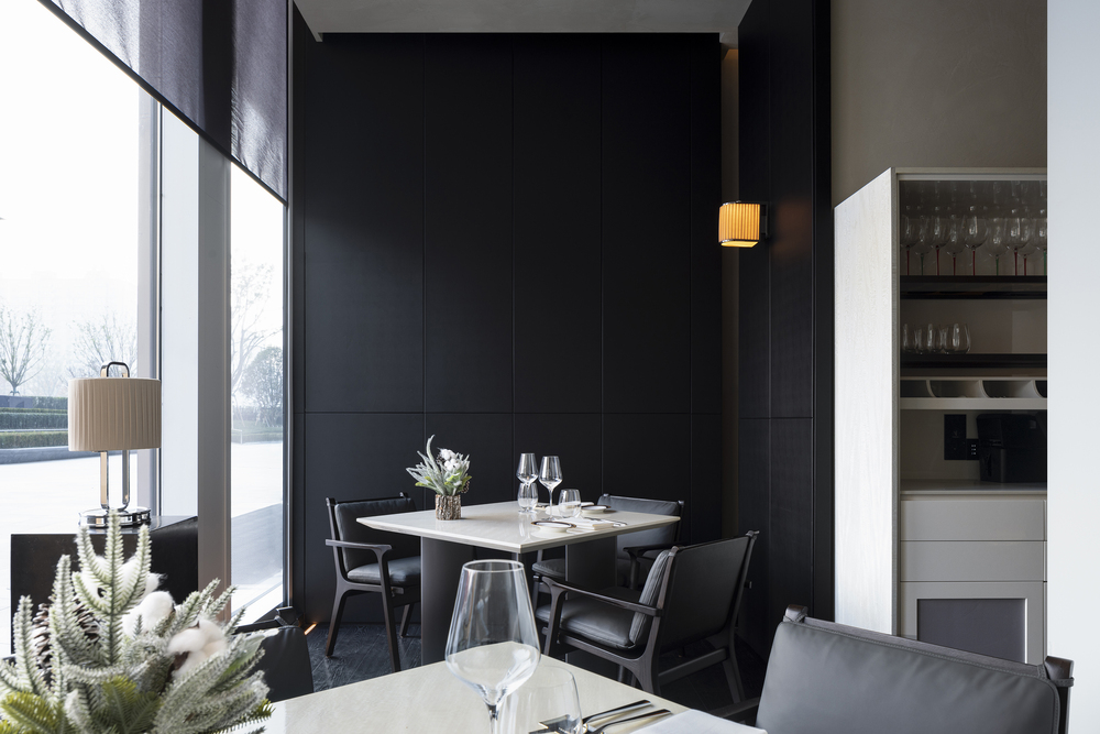 On the other side of the open dining area, which faces the mall’s public area, a low partition subtly enhances privacy and adds a sense of grandeur to the dining experience.