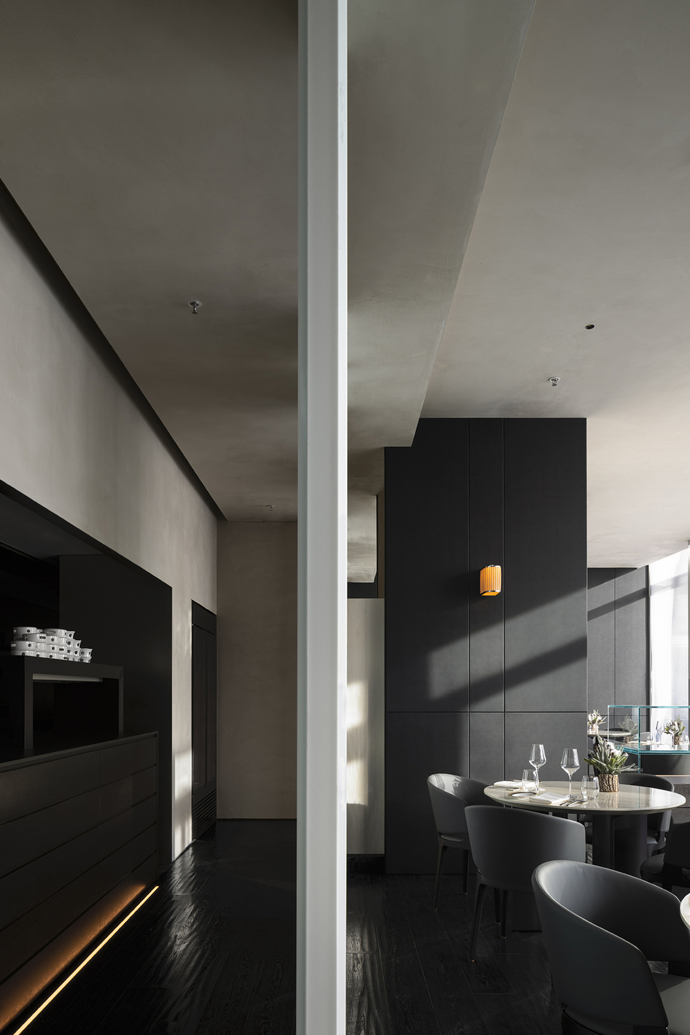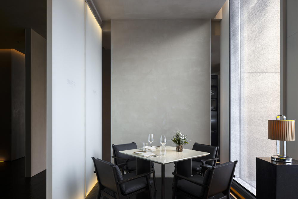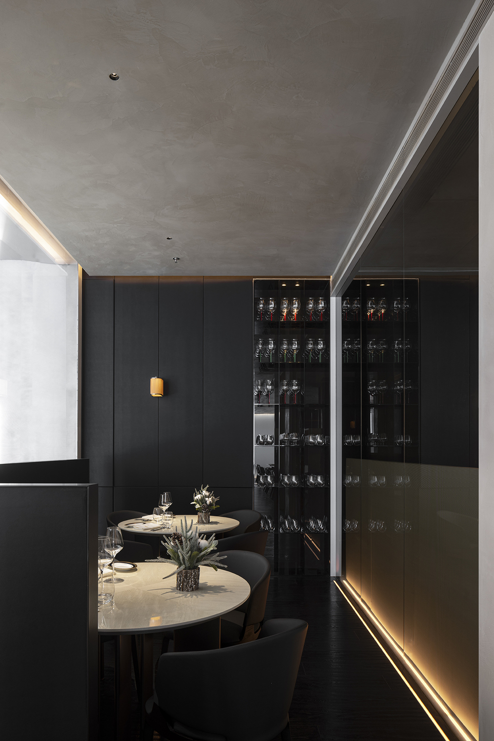 In the front area following the entrance, a strategically positioned “box” space acts as a distinctive transitional area with a clear guiding function, allowing patrons to immediately perceive the spatial mood, resulting in an engaging experience.