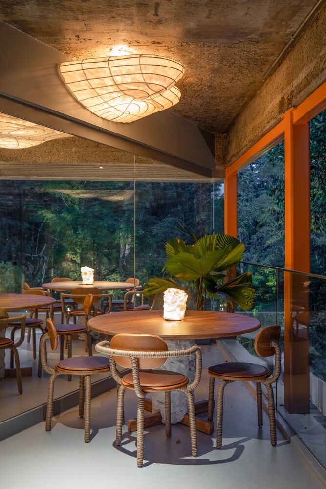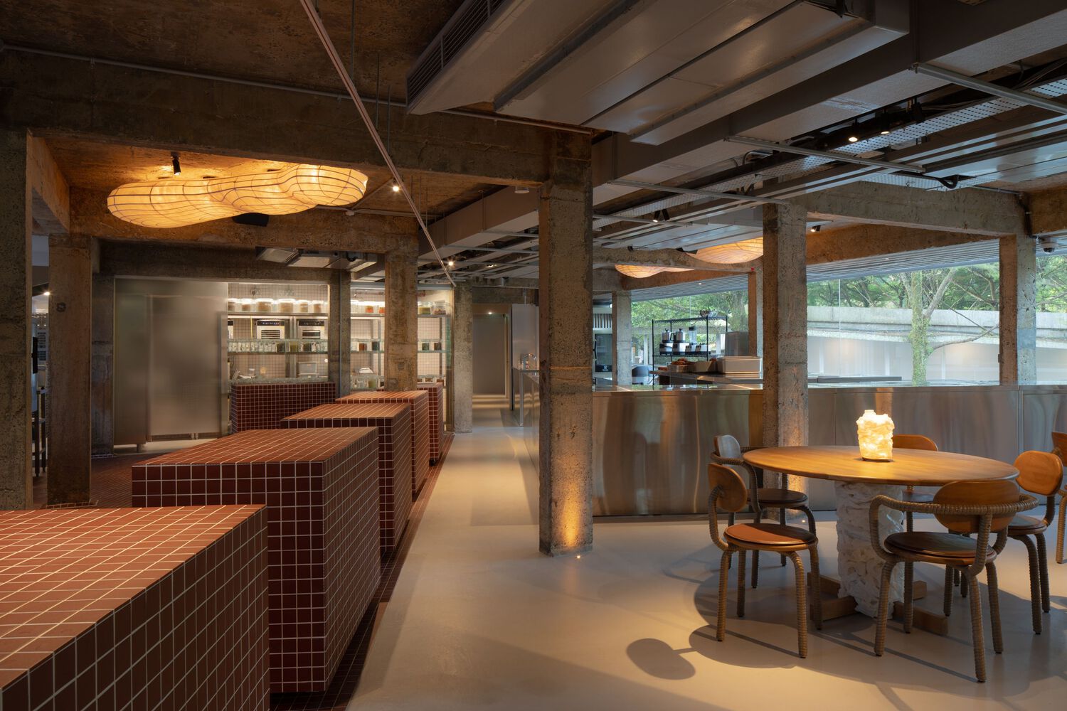 The original modernist clubhouse is a double-story building characterized by ribbon windows. The design transforms its first floor into a semi-outdoor dining area that opens to terraces and connects directly with the lawn, fostering casual meals in a relaxed atmosphere. The main dining space faces the lawn, while an open kitchen at the rear ensures transparency, allowing visitors to observe the preparation of dishes and engage with the culinary process.