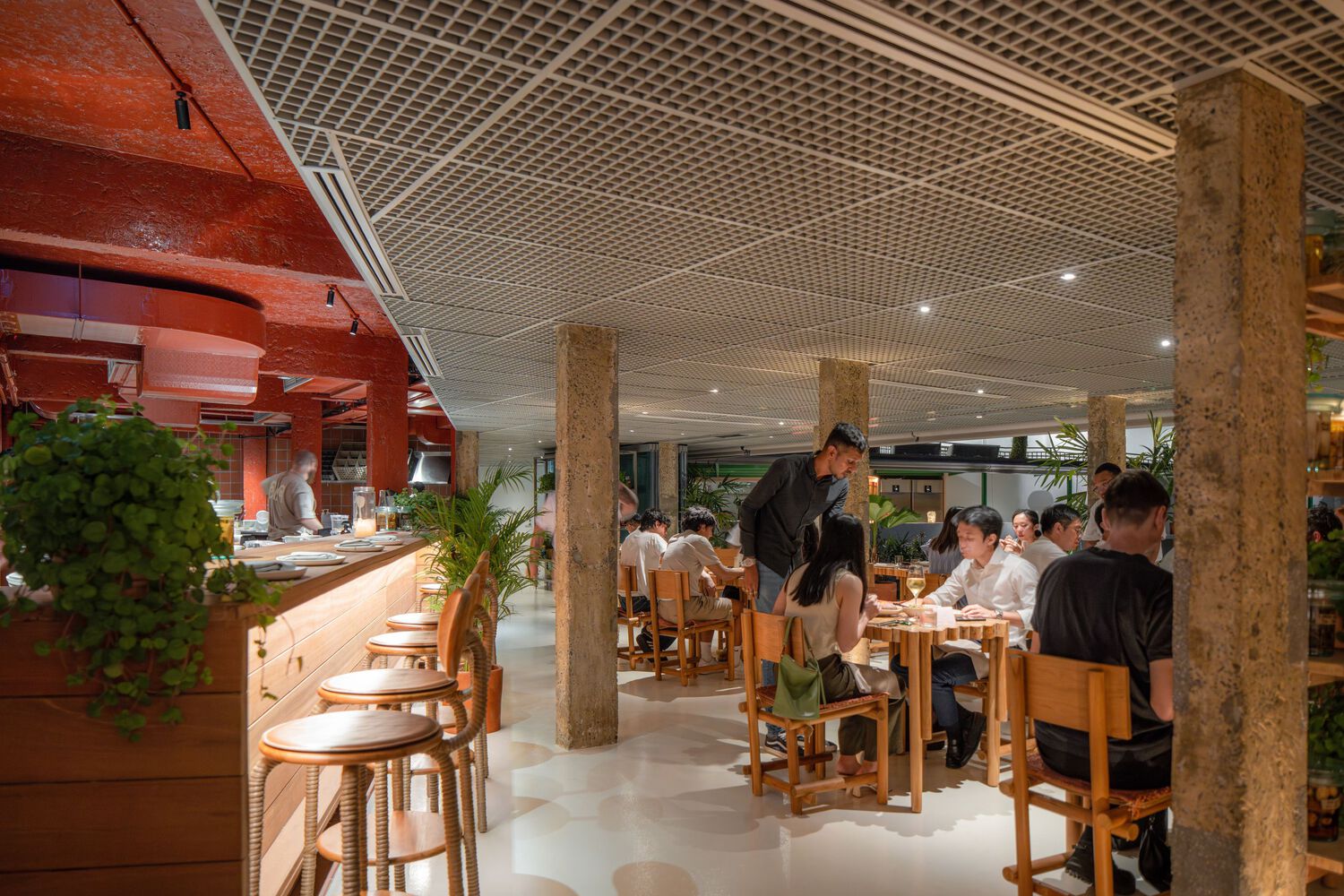 Sustainability is a key principle of AIR, reflected in the furniture and fixtures designed by Andreu Carulla. Materials such as recycled timber, HDPE plastic bottles from a former art installation, and Styrofoam — normally considered waste — are repurposed into functional and aesthetic objects. These interventions highlight AIR’s ethos of finding value and beauty in discarded materials, aligning with broader themes of food sustainability and responsible consumption.