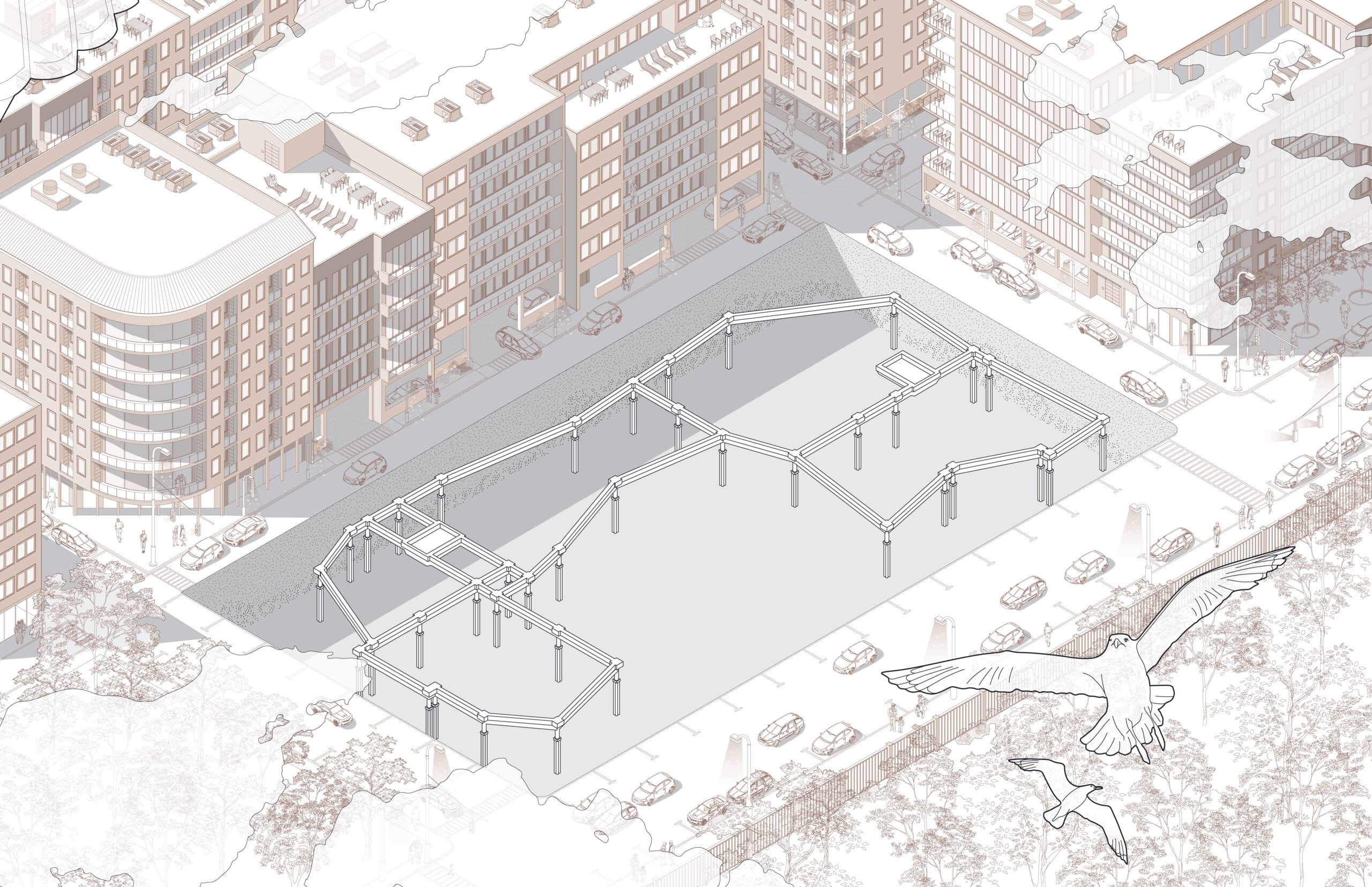A feeling of uncomfort and smallness is felt by those on a pedestrian scale, which symbolises the first stages of a mental illness. As someone walks into the space, it is bright and healing, which symbolises the treatment itself patients receive. Triangular mesh panels double as passive cooling strategies as well as help heal patients through the introduction of sunlight and natural ventilation. The other panel material, cross laminated timber advocates for the usage of innovative construction processes and sustainable materials.
