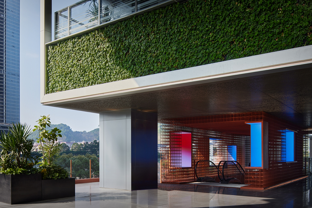 The interconnecting vertical staircases, lighting and ventilation systems in the elevator halls and core tubes create a harmonious and natural ecological space. Visitors are greeted with a green view upon entering, creating a vibrant urban oasis that is a rare sight in first-tier cities with ubiquitous skyscrapers. The curtain wall opens up to clear skies featuring “Shenzhen Blue”, while inside, the leisurely greenery basks in the cast of sunlight. This mutual complementing of the two elements conveys the harmonious relationship between humans and nature.