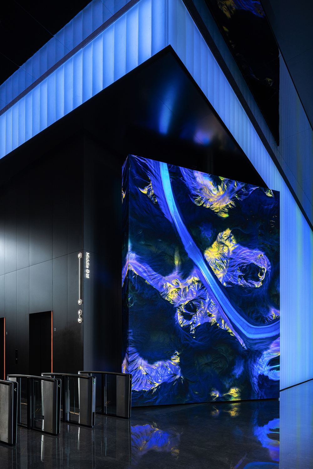 The boundary between the interior space and the outside world has been given a creative and modern touch. In the lobby, there is a display of permanent digital artworks known as “Poetry of Nature”, which includes a rotating smart square screen and an interactive installation, created by Ultra Combo, a new media team from Taiwan, China.