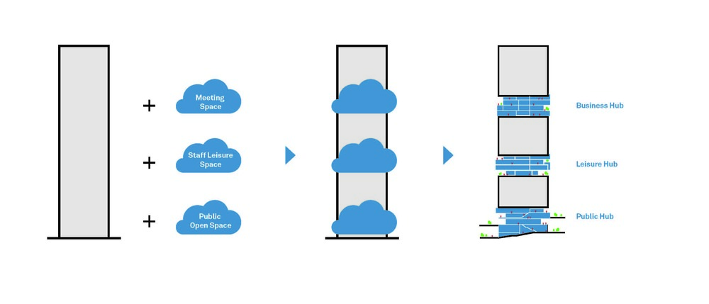 Based on the building form of “Cloud Hubs” and the scarcity and complementarity of the commerce in the surrounding community, T33 has “Cloud Boxes” derived from three main public hubs, making it stand out as a one-of-a-piece complex. Through a sequential reorganization design approach, the building is embedded with functional boxes of varying sizes for diverse interactions, which emphasizes the internal and external connection between people, technology, and nature, forming a fabric that coexists with the surrounding environment and adding an unusual sensitivity and vitality to the rational urban space.