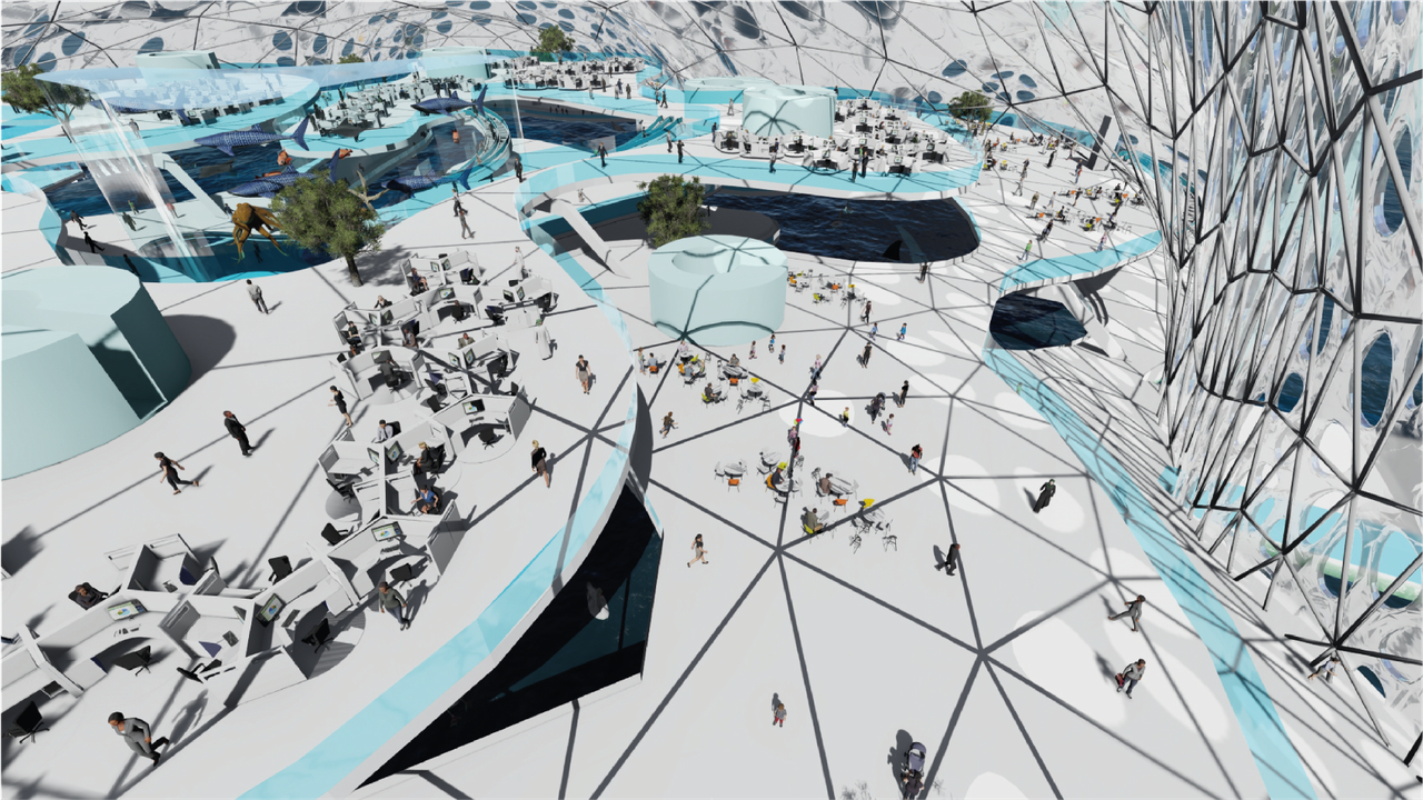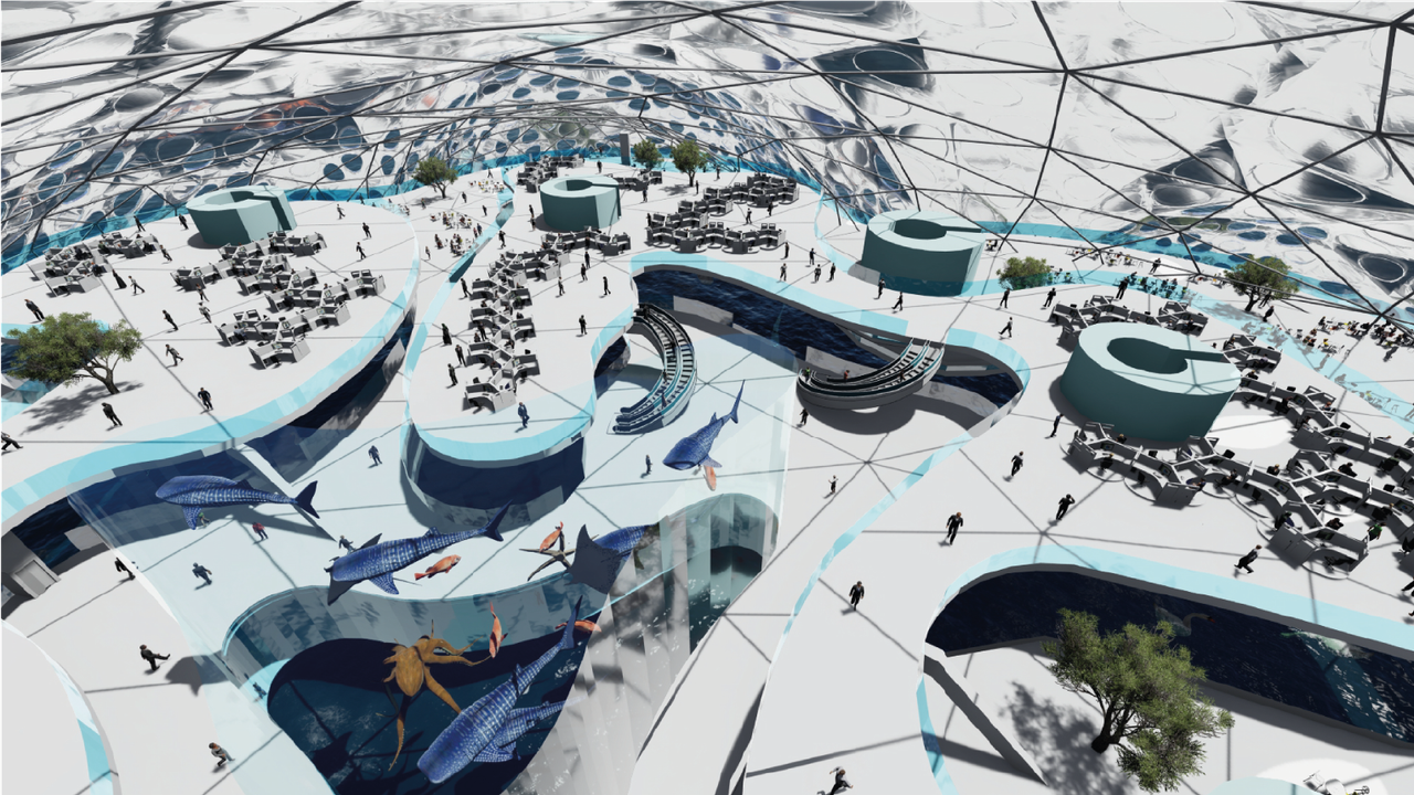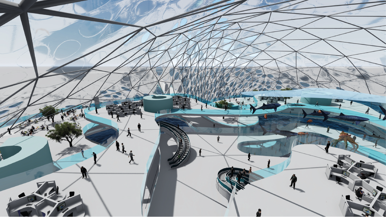 From the two full-scale open water pools at first-floor visitors can enjoy traveling vertically via our deep-sea submarine elevators exploring the magical life under the ocean surface. The deep-sea pods are air-conditioned and can host up to three people at the same time, diving down at the depth of 1,000 meters.