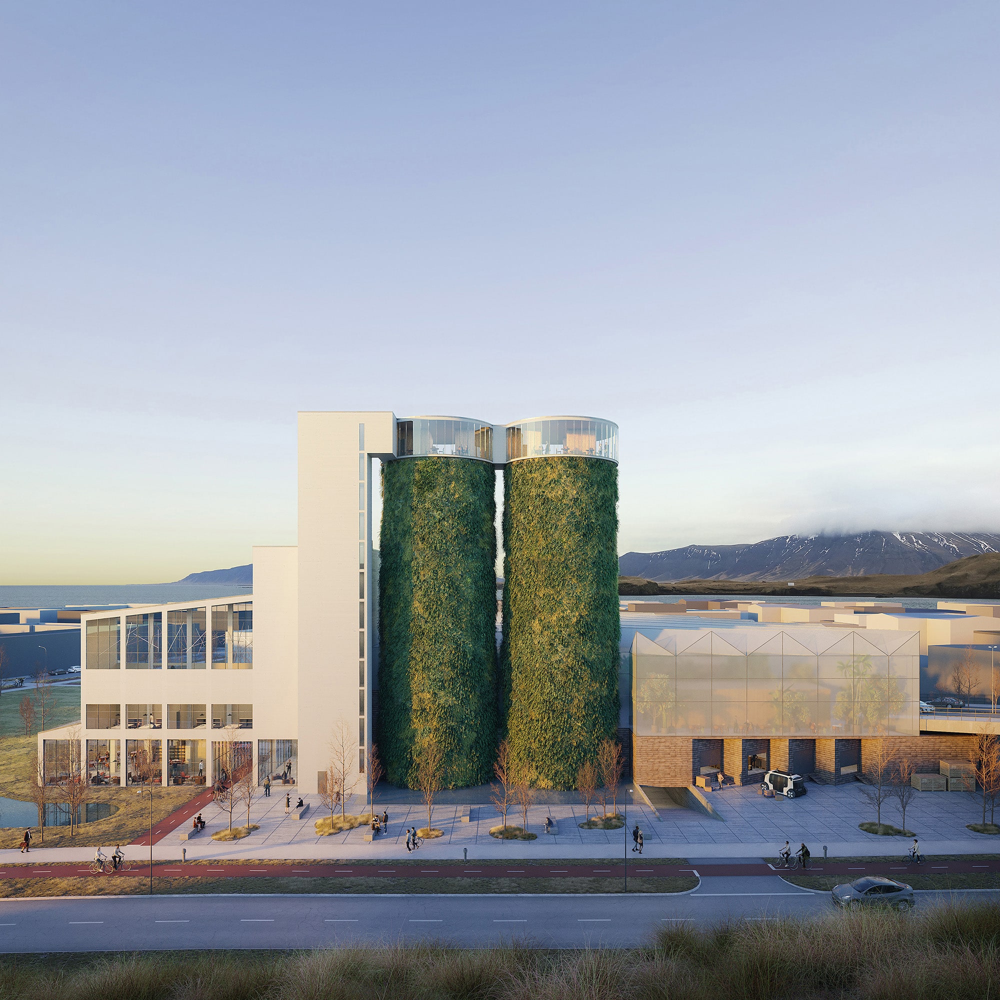 The core of the project is the high tech vertical farms housed in the silos. Once a cement storage, the structure is given a new life and a chance to redeem its carbon-heavy past. In the new, carbon neutral annex made of mass timber and glass is a dark store: a food distribution hub dedicated to online orders. From there, EVs will deliver regular supermarket goods and also the produce grown next door, with the shortest farm-to-table distance available in Iceland. On the opposite side of the silos is the food startup incubator, which will have opportunities to collaborate with both the farms and the distribution hub. On the ground floor and accessible to the general public there is a food court, a farmers market, a zero-kilometre restaurant and a few other attractions for the neighbourhood.