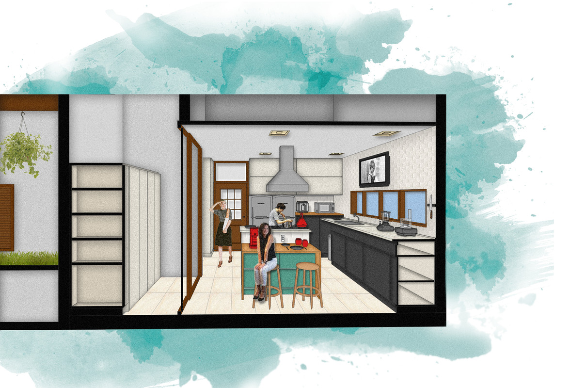 The project sought from the lighting, circulation and space, create a kitchen that expands to the outdoor area, used by residents, for parties and receptions. A new window was introduced to the outside, which allowed more natural light to enter. Two walls that closed the environment, were removed, allowing the amplitude of the environment, leaving tenuous the division between external and internal space.