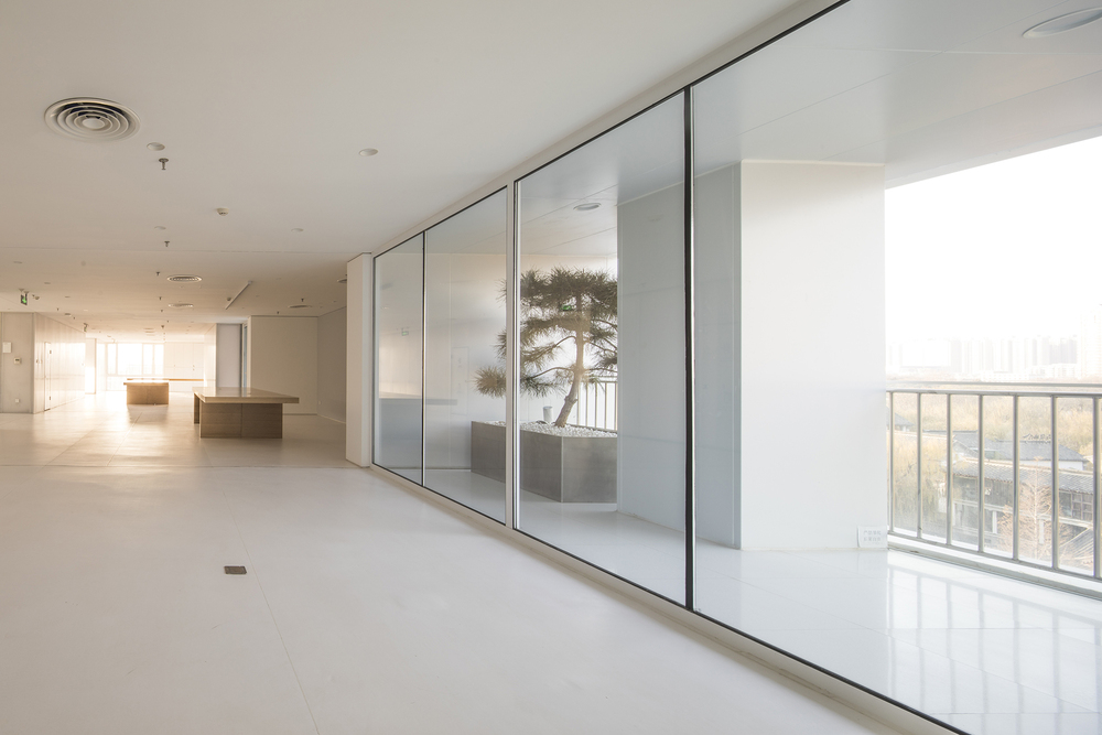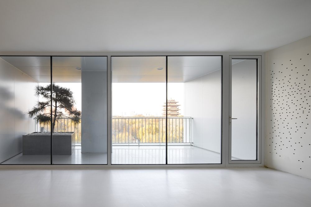 The building is the reinforced concrete frame structure, and the floor slab adopted a prestressing system. Low floor heights and the lack of connection among floors shackle the openness and freedom that art spaces should have. From the inside out, we reorganized the building’s function, creating the freedom and proper variation of the interior space, thus affecting the facade and connecting with the open view of DaMing Lake.