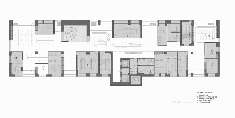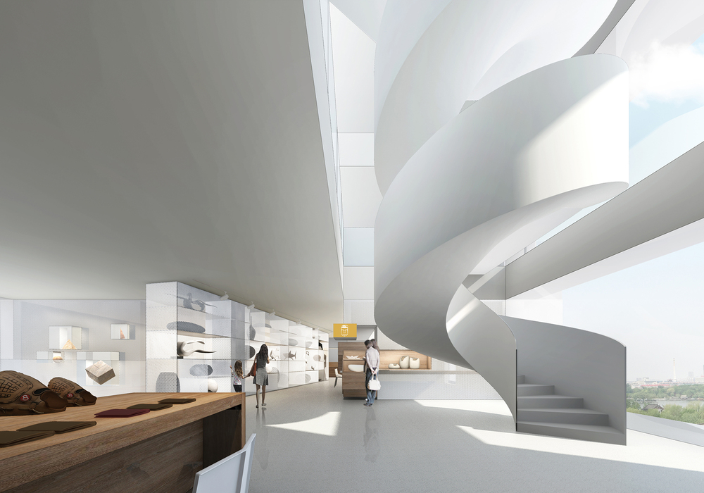 We add a fully open transportation system in the cross-level public space and retains the convenience of vertical elevators. The spiral staircase extends vertically like a sculpture, connecting the platforms of different heights. Open traffic constantly shifts positions in the space, traversing different functions in roaming, increasing the sense of experience of the building and connecting the floors to the ground.