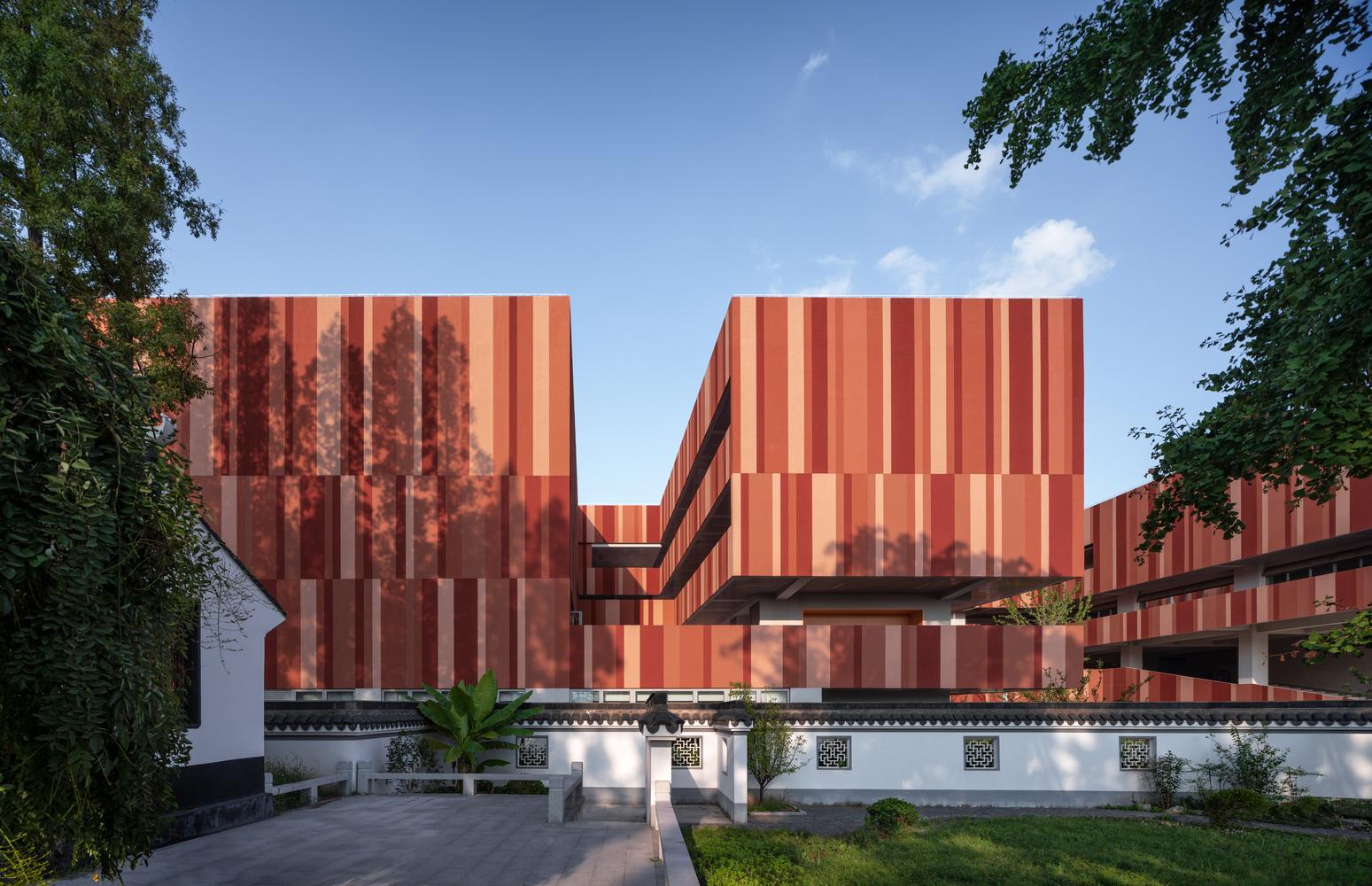 Located in the western part of Fengxian New City, a suburb of Shanghai, Fengpu Elementary School stands in a region that was once an industrial district and has since evolved into a residential area. This site is notable for its century-old ginkgo tree and a small building from the 1970s that mimics classical architecture. These elements are now part of the school premises, encapsulated within a newly constructed wall that also reflects a pseudo-classical style.