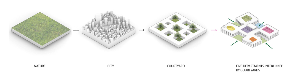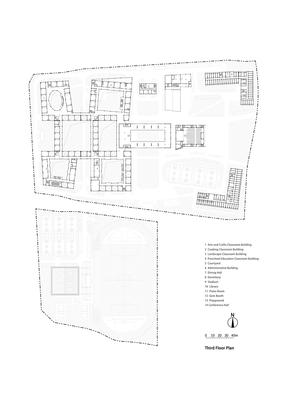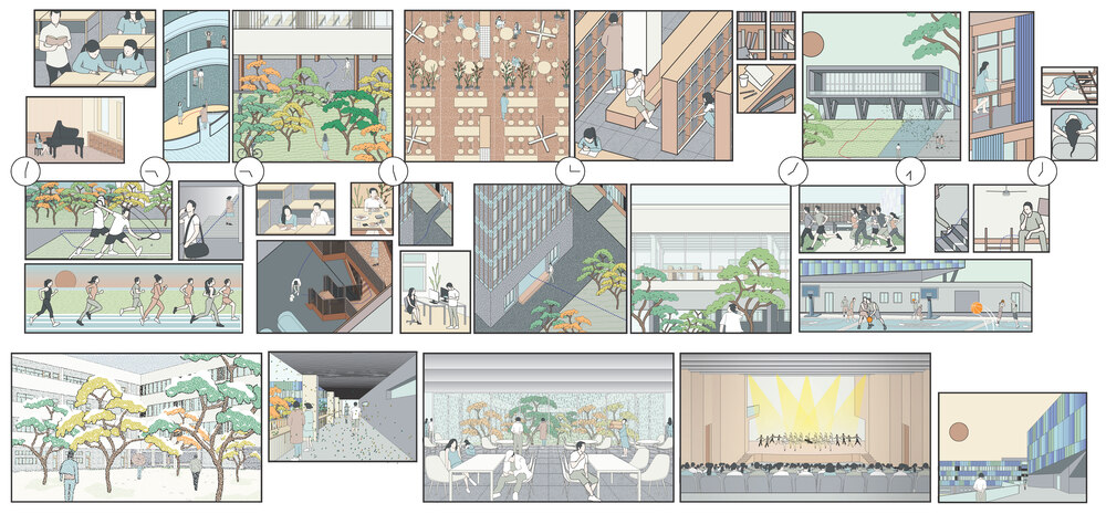 By creating multiple courtyards with diverse attributes and functions, the design constructs a microcosmic city that can enable a multitude of events, spaces, and stories, transforming the traditional closed teaching model into an open and engaging narrative.