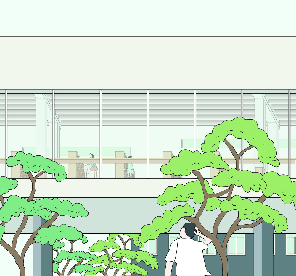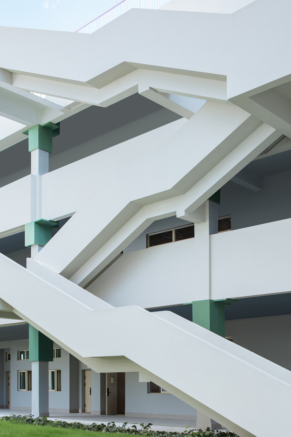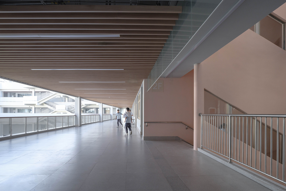 Designing a vocational high school presents a specific set of challenges. In contrast to the conventional classroom layout in general high schools, vocational high schools demand the building of a substantial number of vocational training rooms alongside standard classrooms. Students must navigate between various classrooms in different departments efficiently, necessitating an efficient circulation design on both horizontal and vertical levels to facilitate the intense traffic between diverse areas of specialization and functions. As the pedagogy of the school evolves, designing the school with versatility that can adapt to changing functions, ideologies, and events also becomes crucial.