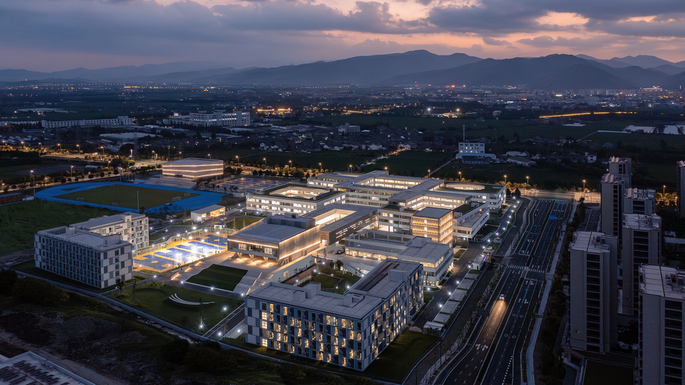Ningbo Gulin Vocational High School is a new campus that accommodates 3,000 students distributed across 75 classes, spanning four specialized departments: preschool education, culinary arts, arts and crafts, and e-commerce. Situated in Ningbo’s Haishu District, China, the project encompasses two distinct plots, with a combined land area of approximately 96,851 square meters.