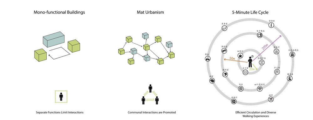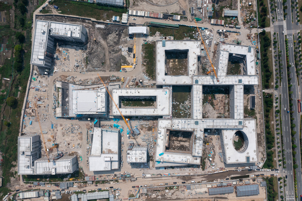The project challenges the traditional notion of an efficient construction system in China, which typically follows an orthogonal 8.4m x 8.4m grid. Instead, we explored alternative spatial configurations using mat courtyard typology in a non-orthogonal grid system. This allows various programs to be interlinked in a more efficient and organic way and offer students and teachers a more convenient pedestrian experience.
