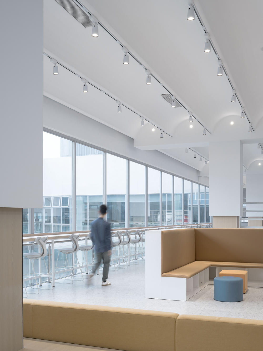 On the ground floor, the vocational training rooms with lower lighting requirements are placed in an open framework to accommodate flexible layouts over time. On the second and third floors, standard classrooms are clustered around different inner courtyards to receive optimized lighting and views. Additionally, in between the standard classrooms and vocational training rooms, various informal teaching spaces link various departments together to foster multidisciplinary interaction.