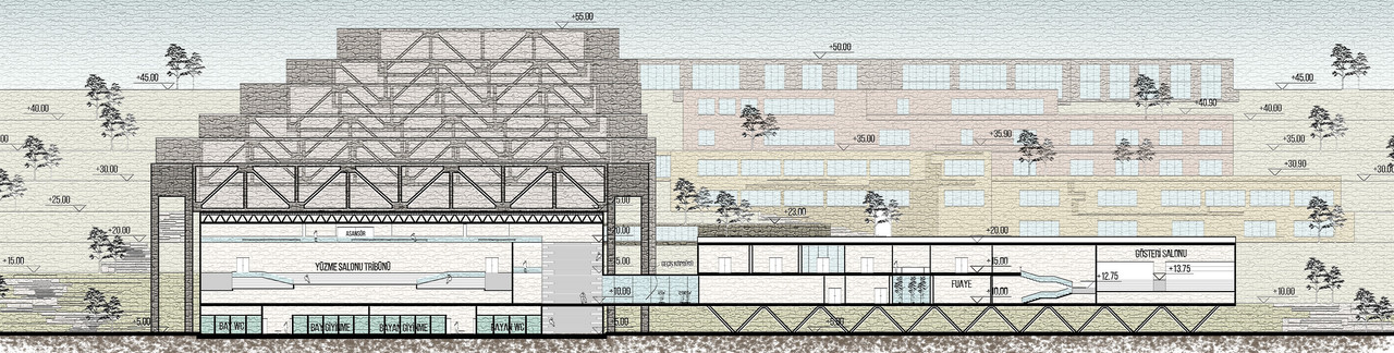 Sea water, which is known for its usefulness and naturalness, was used in the Olympic swimming pool in order to serve the users in all seasons. In this way, it is provided to support the students who are engaged in various branches of art to protect their body health during their studies.